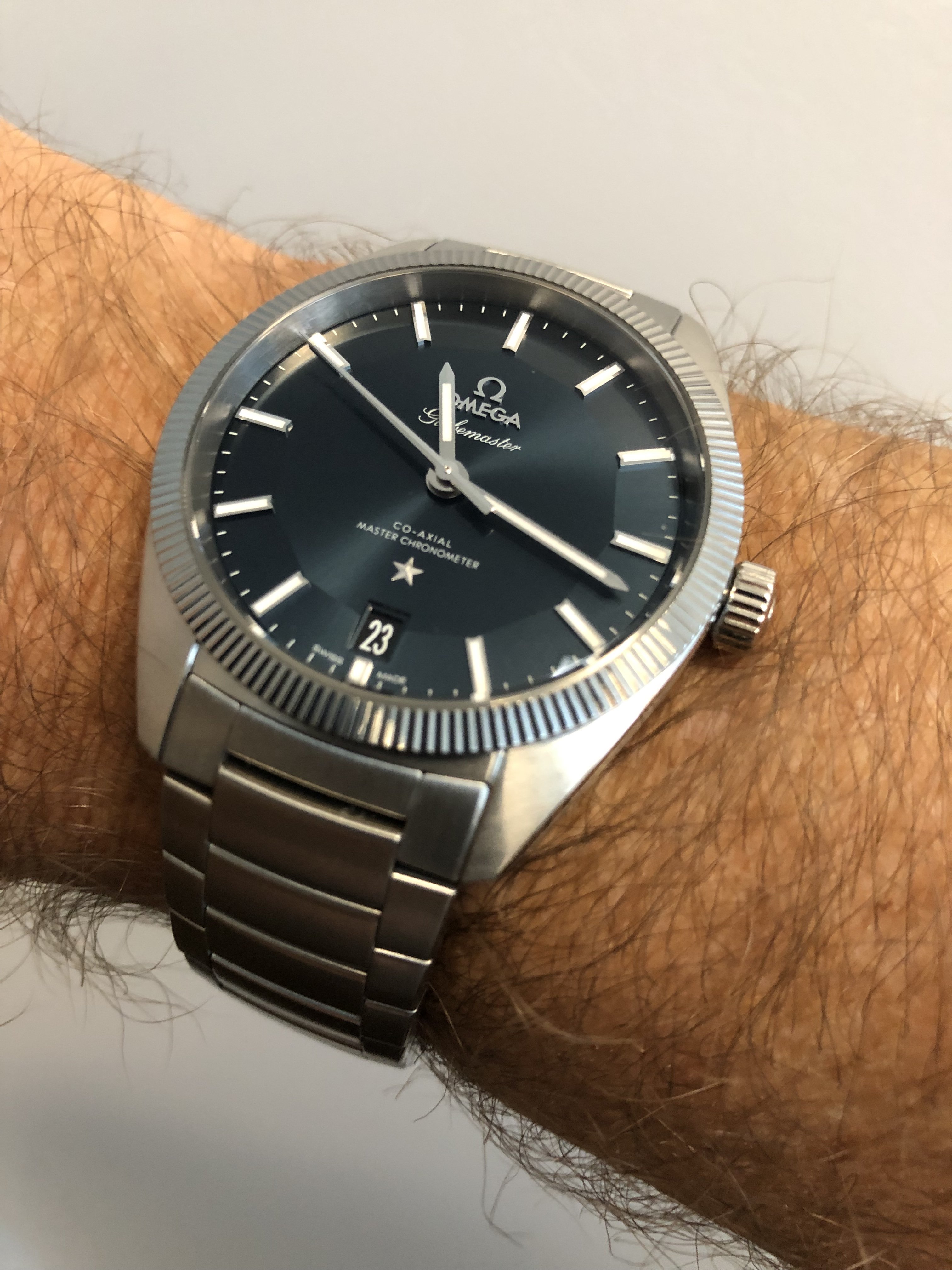 I’ve been considering one my self - and trying to decide between the blue and white dials. I’m leaning towards the white, but have only seen the blue in person. However, my AT2500 with heat-blued hands/indicies has a silver/white dial, so a blue dial Globemaster might be a nice contract.