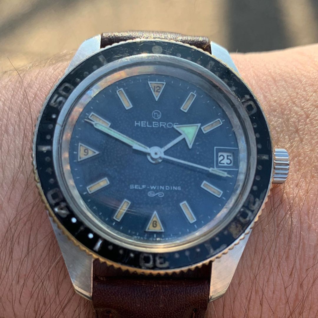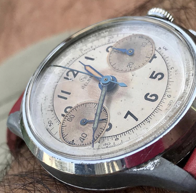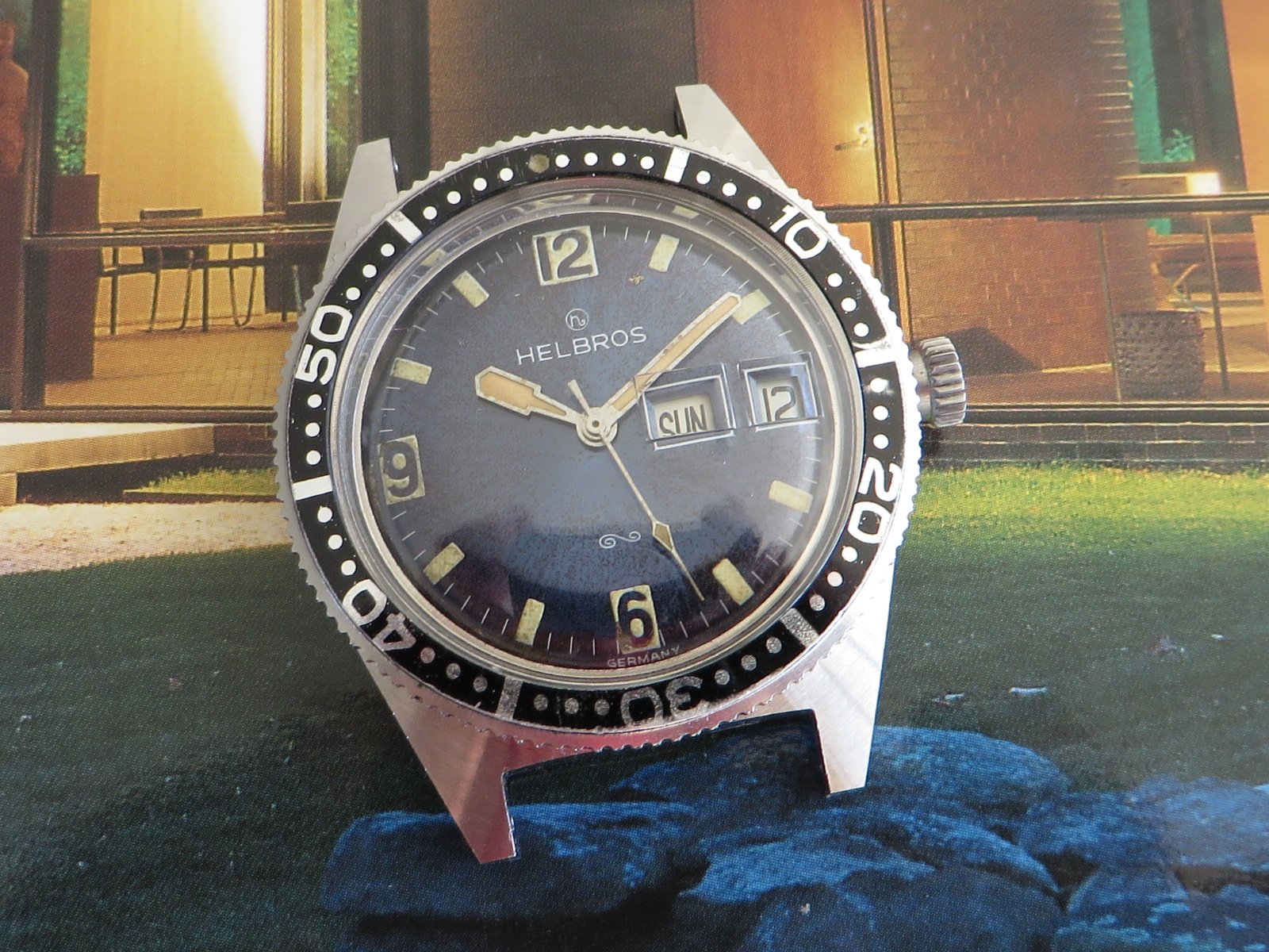 The helbros in the house, but running pretty good so far. One auto the, put some cheap straps I had, not sure when but a service. With luck and care, I hope the dial cleans up. The case on the auto is worn, was very like it saw a lots of duty. I don’t think you can get a vintage watch cheaper. Amazing the same company had the killer chronograph. Mr. Heil was about selling watches at any price.
