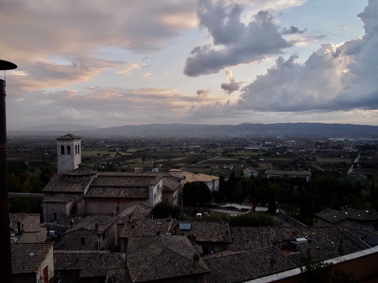 This is a photo I took in Assisi, Italy, in 2012, during a two week guided tour conducted by the National Association of Watch & Clock Collectors. We had checked into our hotel and yarded our luggage up to our room. The curtains and shutters were closed, and the room was dark as Hades. First opportunity I had to open the curtains and shutters, and this was the view looking west. I was gobsmacked!