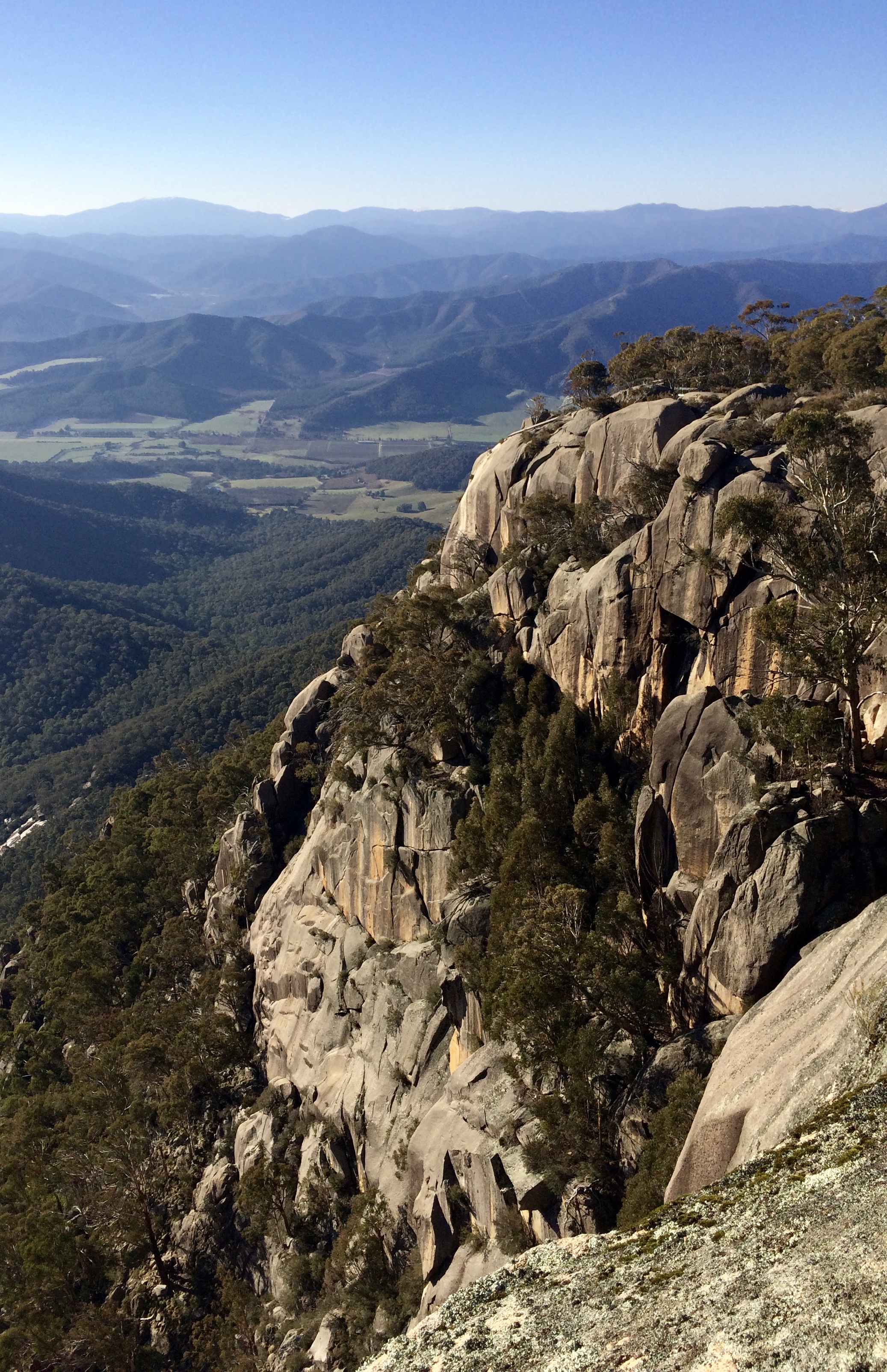 Early morning on Mt Buffalo, Victoria. If you look closely at the top of the cliff you can see the sloping ramp installed for hang gliders to launch themselves. What can I say?