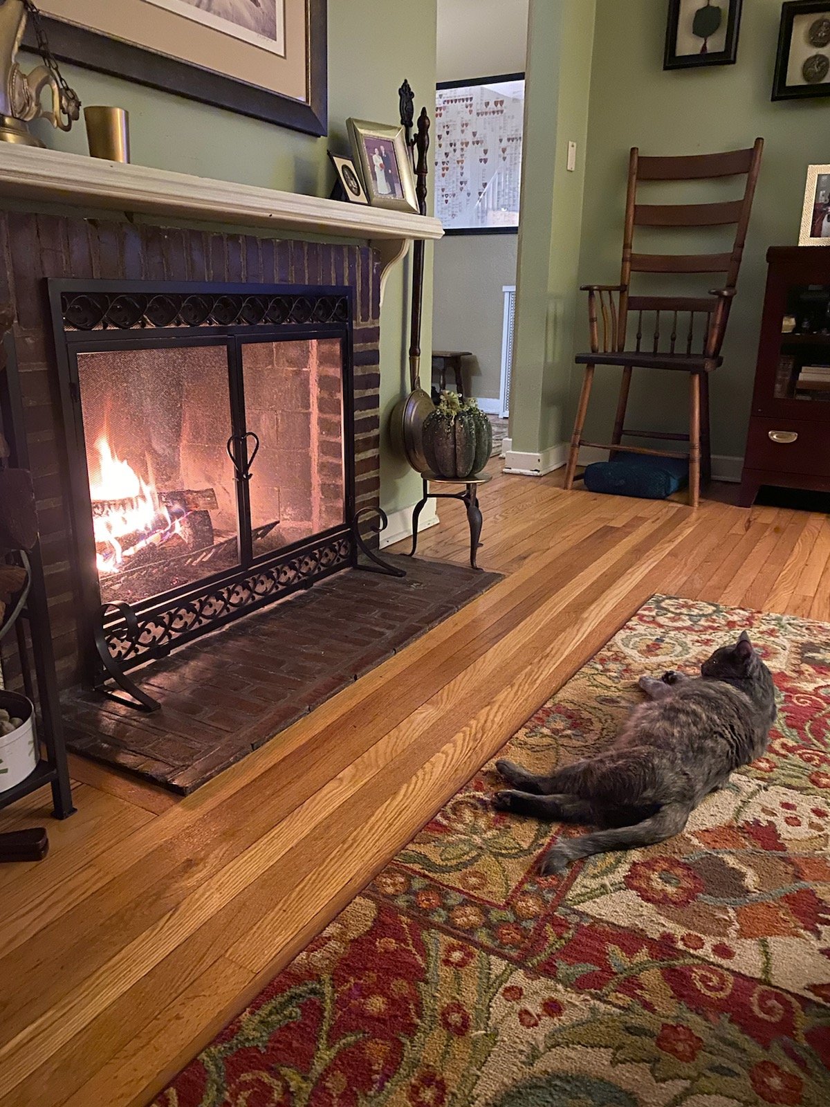 A little warmth and comfort by the fireside on a chilly fall evening in Michigan.