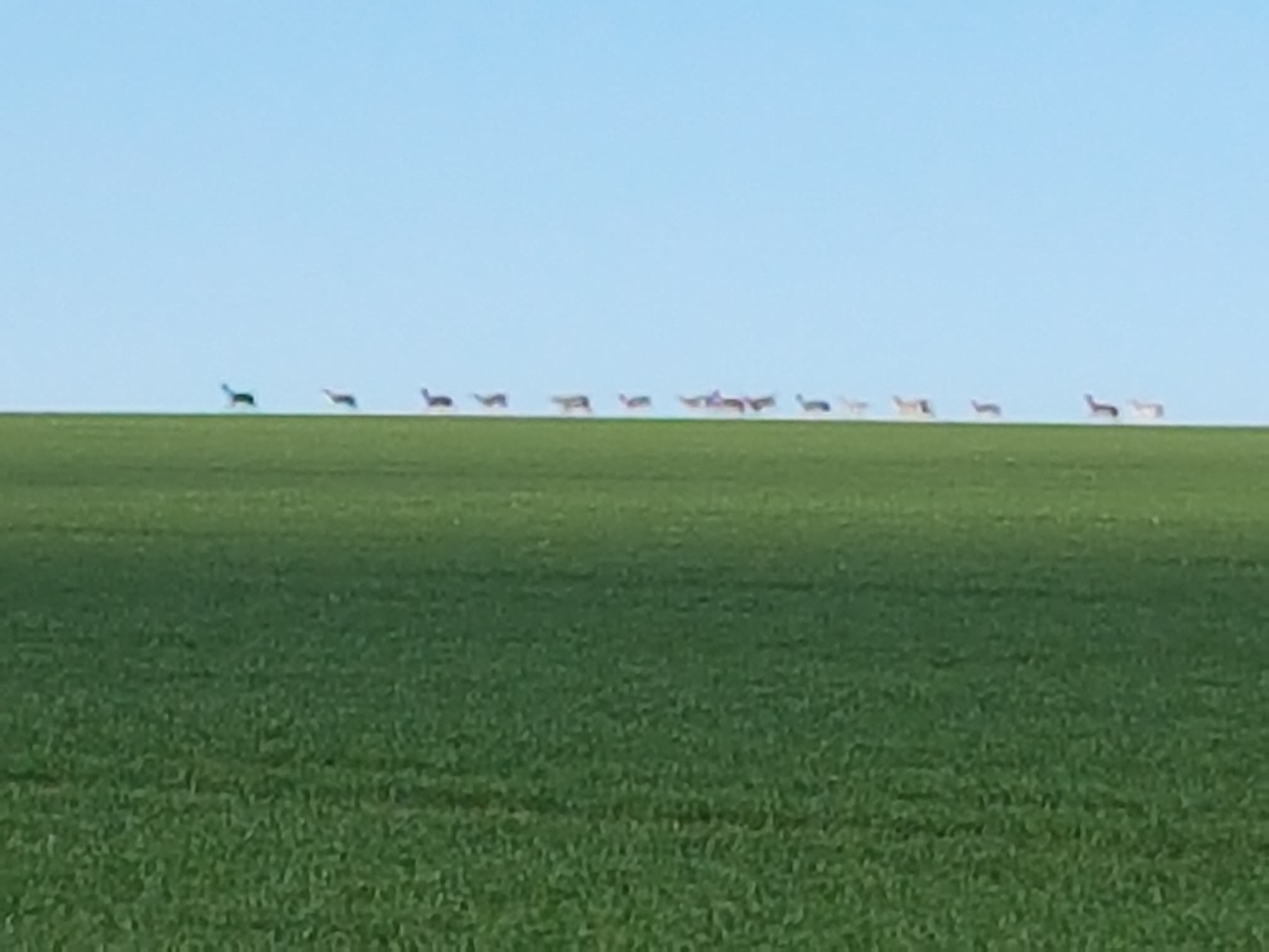 I took this in March while walking in the gentle hills near my home. Nobody was about for literally miles. A herd of 15 roe deer ran across the skyline from right to left, about half a mile away across a field of young wheat, before disappearing over the hill.
