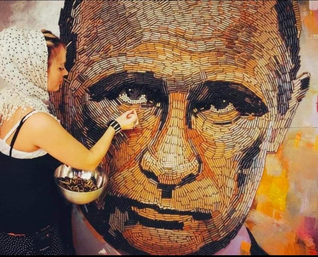 Created by Daria Marchenko, an artist from Ukraine. For the picture, she used 5000 bullet shells collected from the streets of Ukraine.