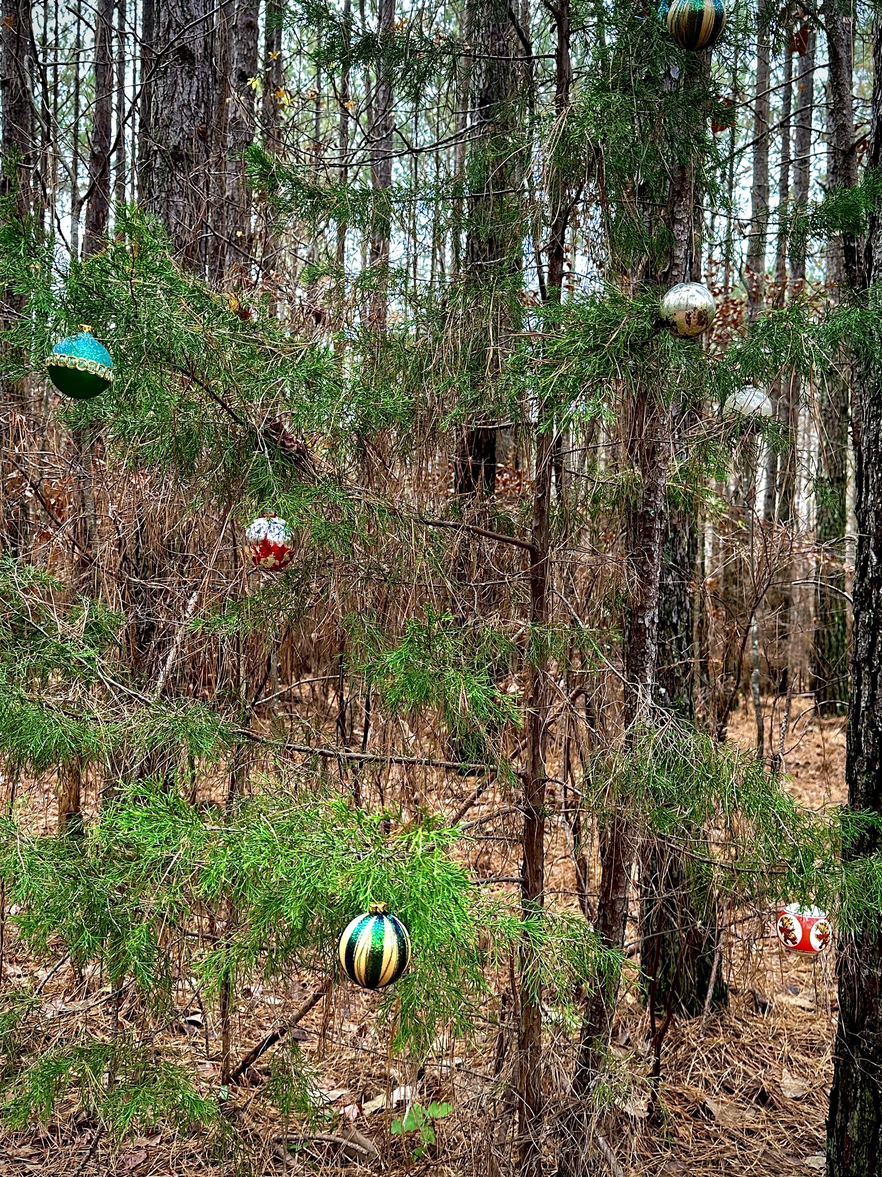 Deep in the woods on a public land hunt in November, I came across this decorated tree in the middle of nowhere. The ornaments were not only hung, but tied to prevent wind from scattering them to the ground.