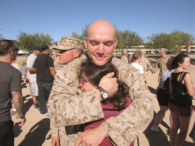 Lifts my spirits every time, but also brings tears to my eyes every time. Taken the instant Mrs. noelekal got to our youngest son upon his safe return to his Twentynine Palms, California base from front line duty with his first deployment to Afghanistan as a 0331 machinegunner. Little did we know at the time that second deployment there would be worse, but he came through it all safely.