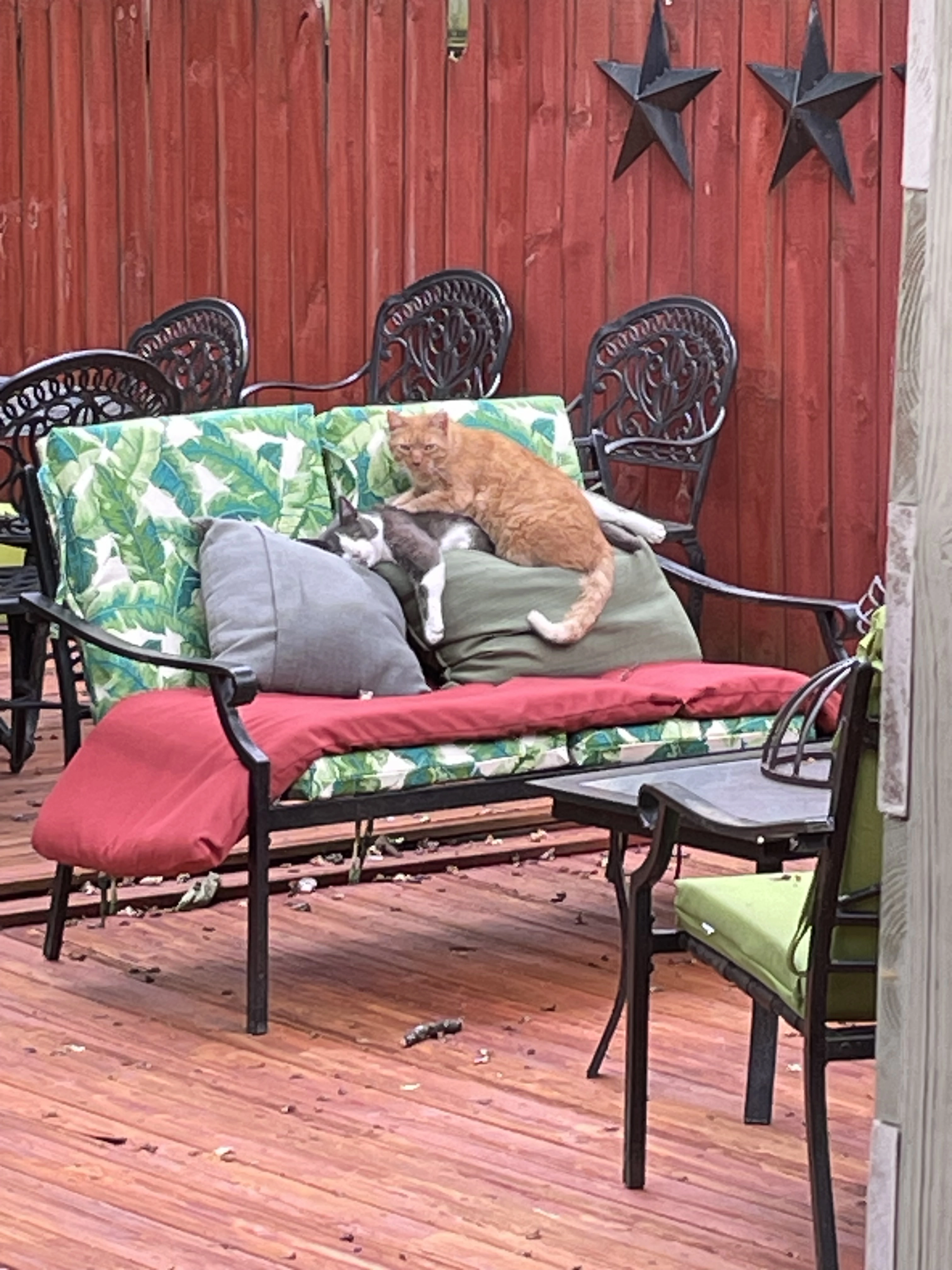 Posts 1,985 Likes 8,460 bsowers34 ·May 25, 2025 Friend's outdoor cats. Shadow getting a massage from Rusty.