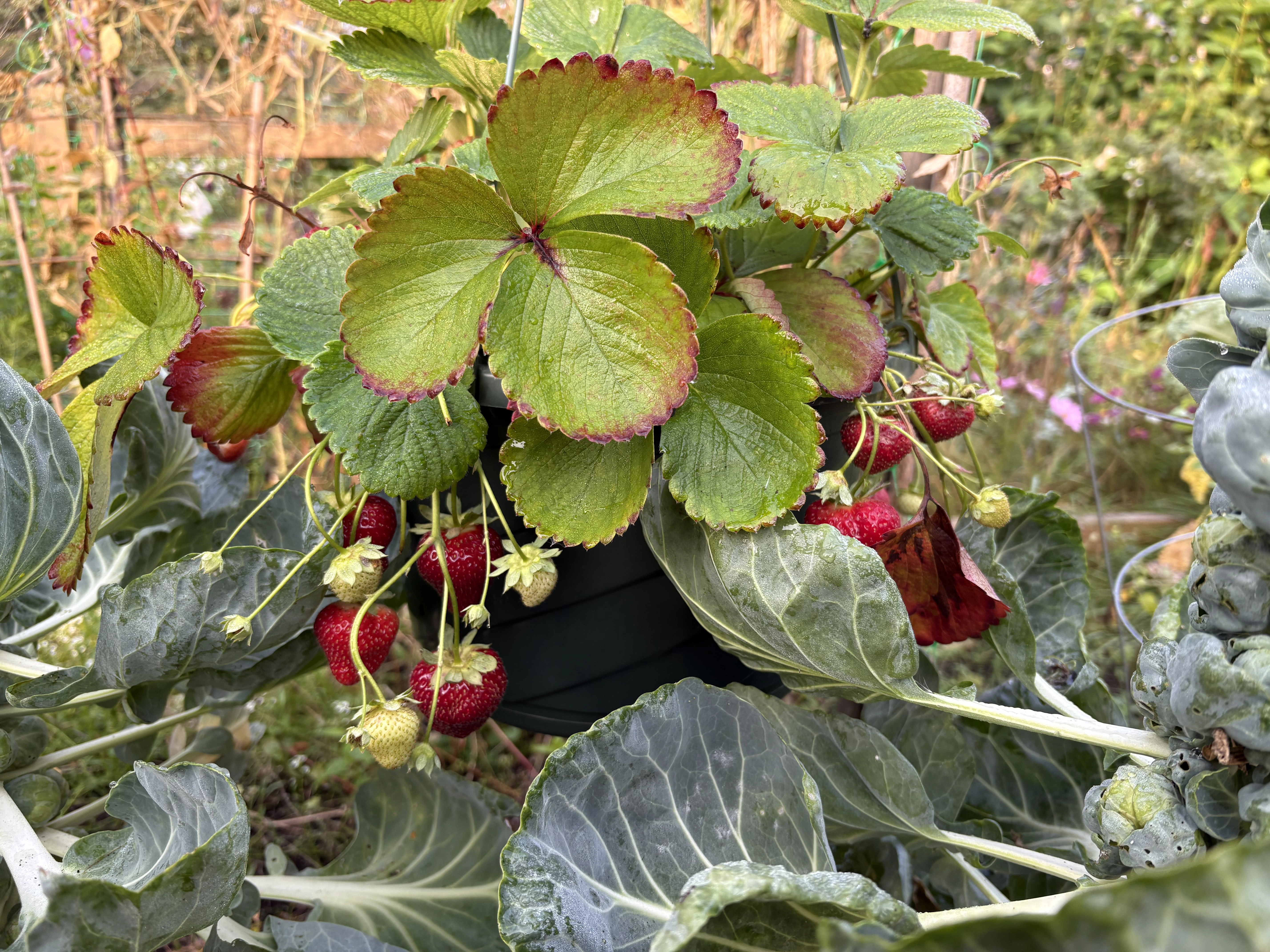 Posts 5,082 Likes 15,701 DaveK ·Sep 7, 2025 Strawberries still producing in September 🥳 Perhaps aided by tree frogs? My attempt to deter crop theft