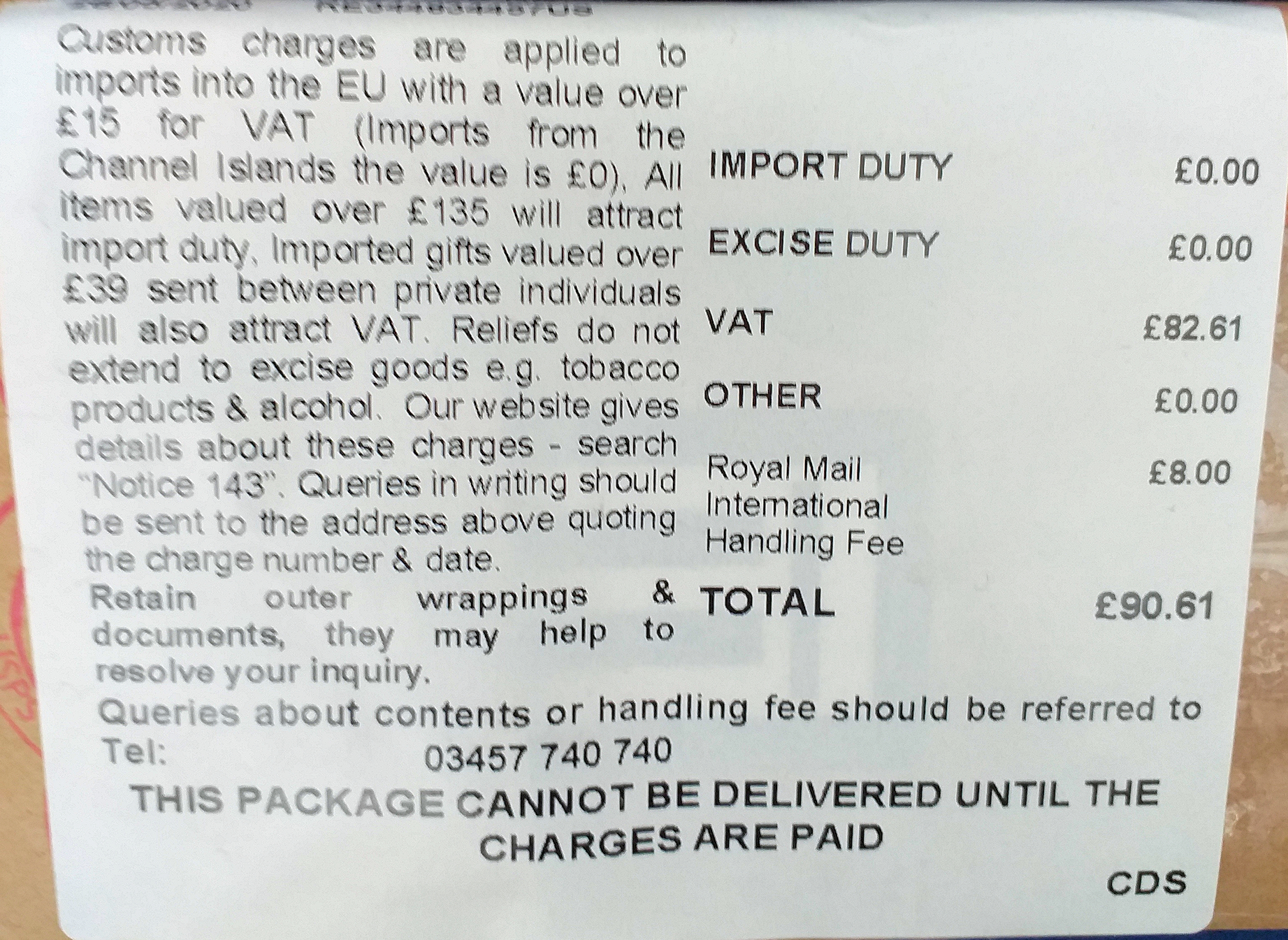 Once again I see how stupid the barriers to international trade. They are but stumbling blocks before our welfare! GBP 500 for a purchase ofUSD 1500?? Let's just hope that it's less as some suggested above but still 25% or more of a total USD1500 purchase is still big bucks!