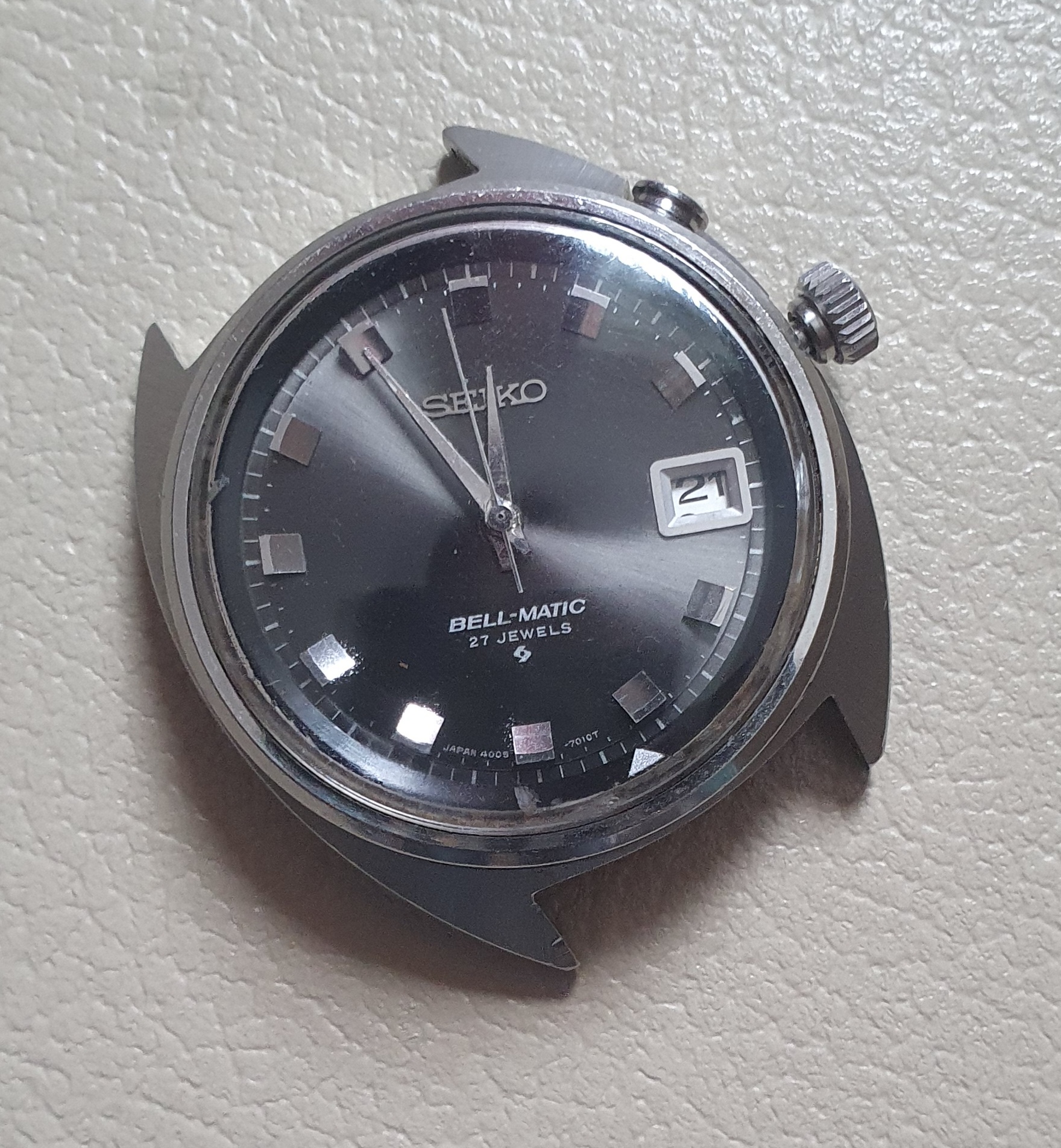 It didn't stop there, though. I liked the case - it had obviously been worn, but the lugs were pretty sharp. Except the top right lug was more worn than the others and, most of all, had a major ding. At about that time I got to know a case restorer who offered to fix just this part of the case and I figured great, good opportunity to give this a try.