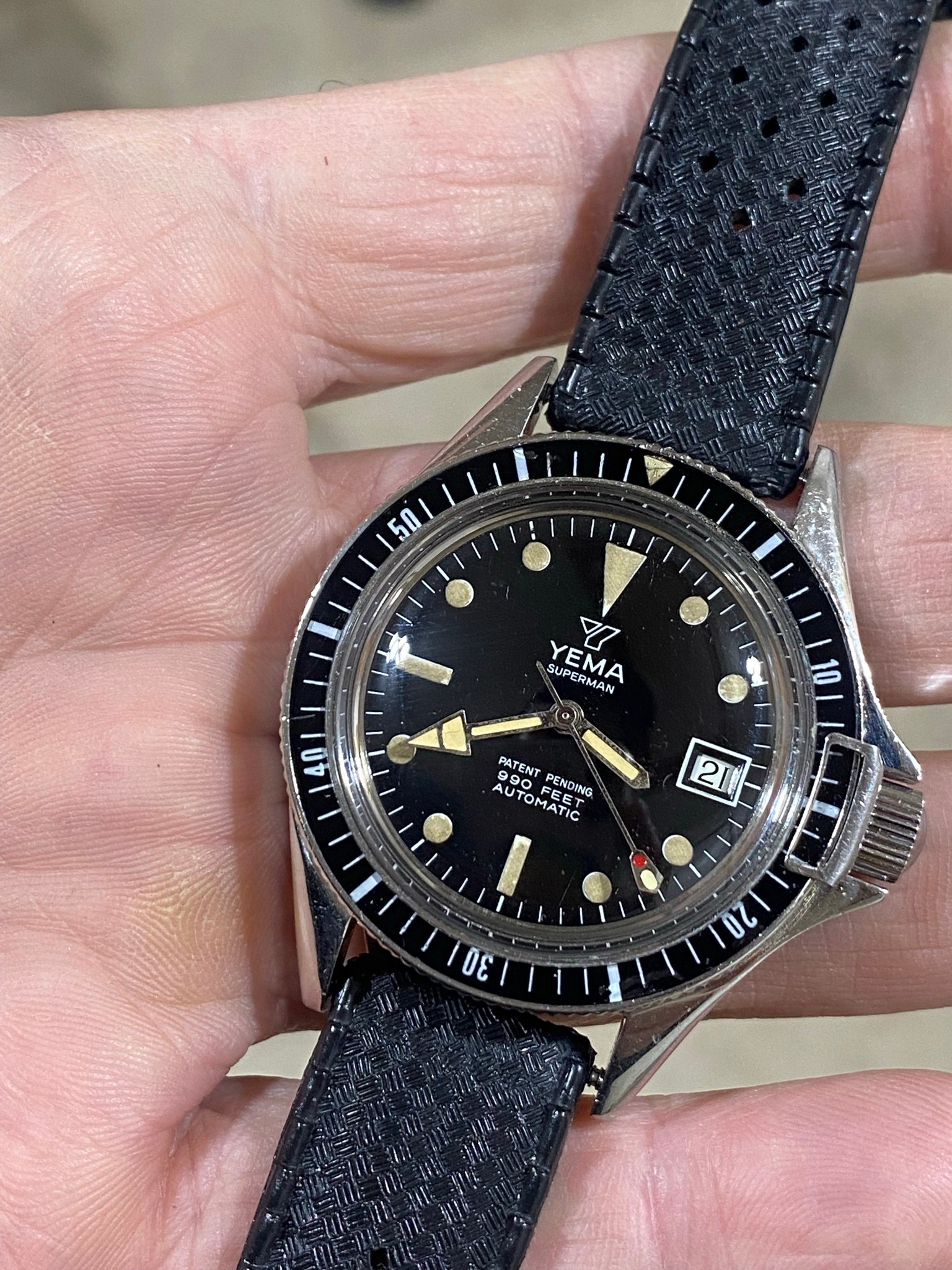 Of course, on the way to him, the parcel with the case got lost. At least I had kept the case back... So, the search for a spare case began. I ended up finding a 168.005 case, which should've been identical, or so I thought. 500€ later I found out that there were minute differences between the products of different case manufacturers, and my 167.005 caseback wouldn't actually fit. The search continued, I found another case (400€) and finally got the watch assembled and serviced (300€).