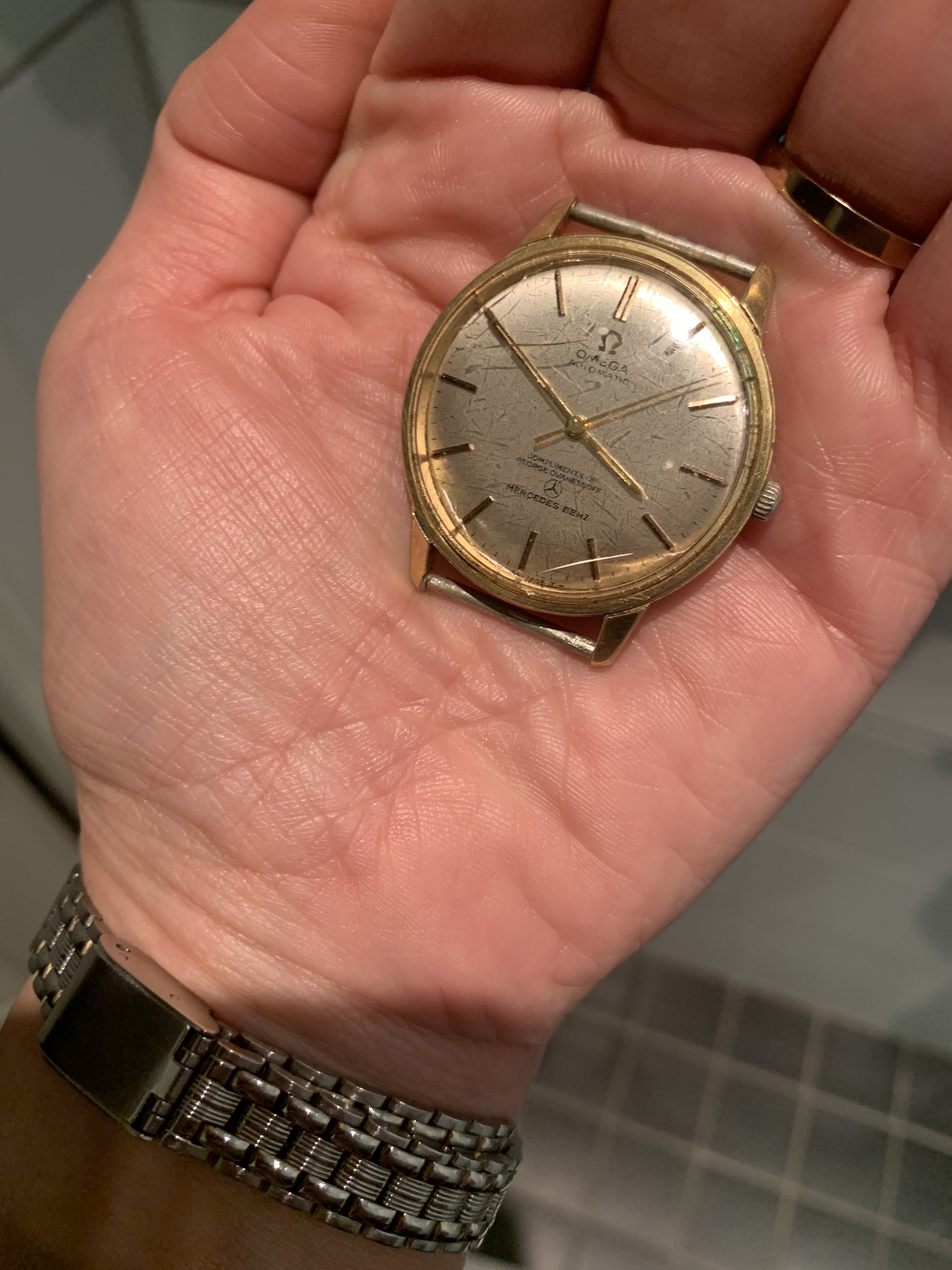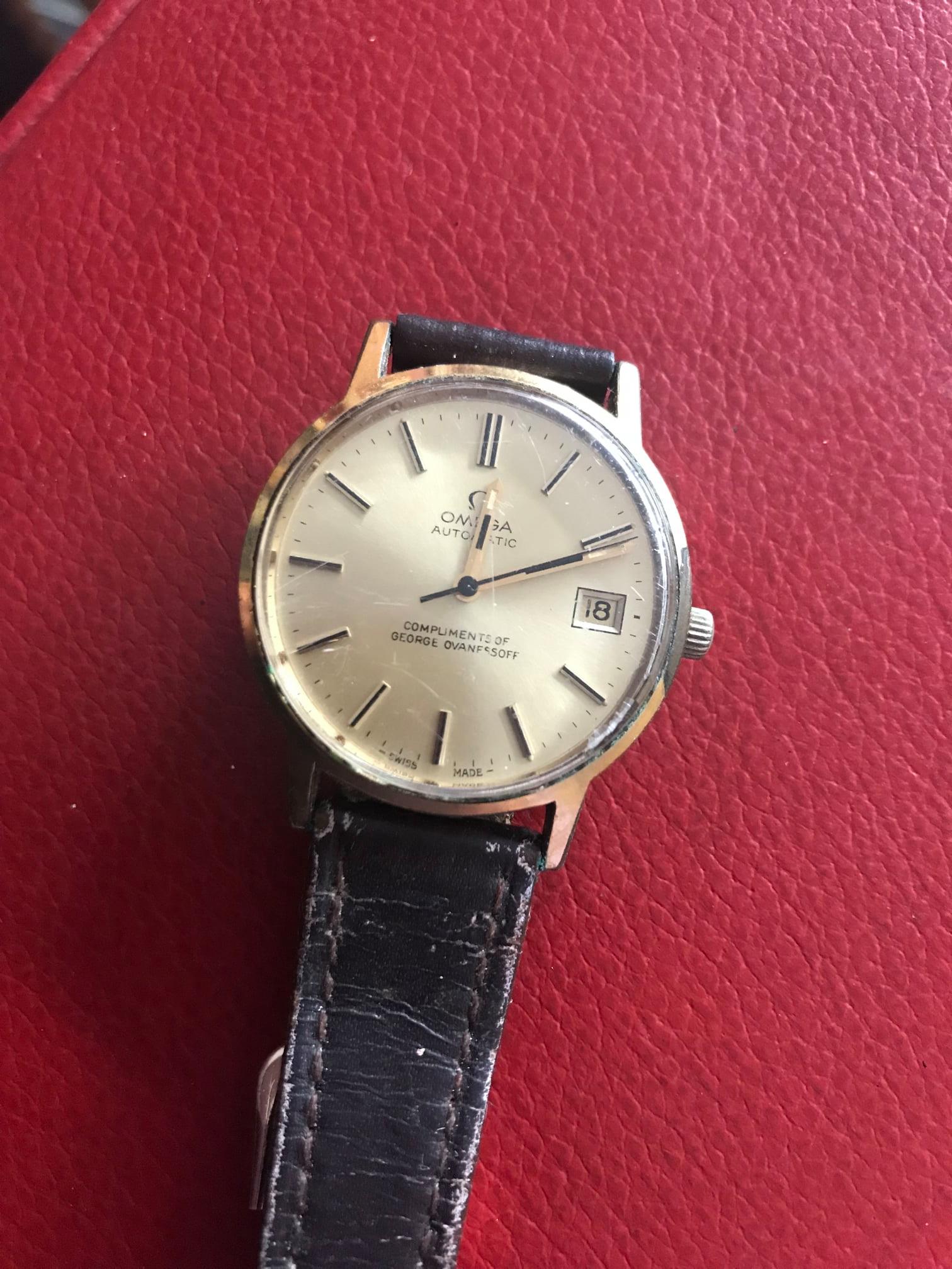 ·I’m in search of an Omega Seamaster watch, probably 70s/80s with the engraving “George Ovanessoff Mercedes Benz” on it. I am George Ovanessoff’s grand daughter. He’s long passed now and I’m searching for one of the watches (apparently there were a few engraved with his name) to gift to my father, his son, for his birthday. Any help in tracking one down would be greatly appreciated.