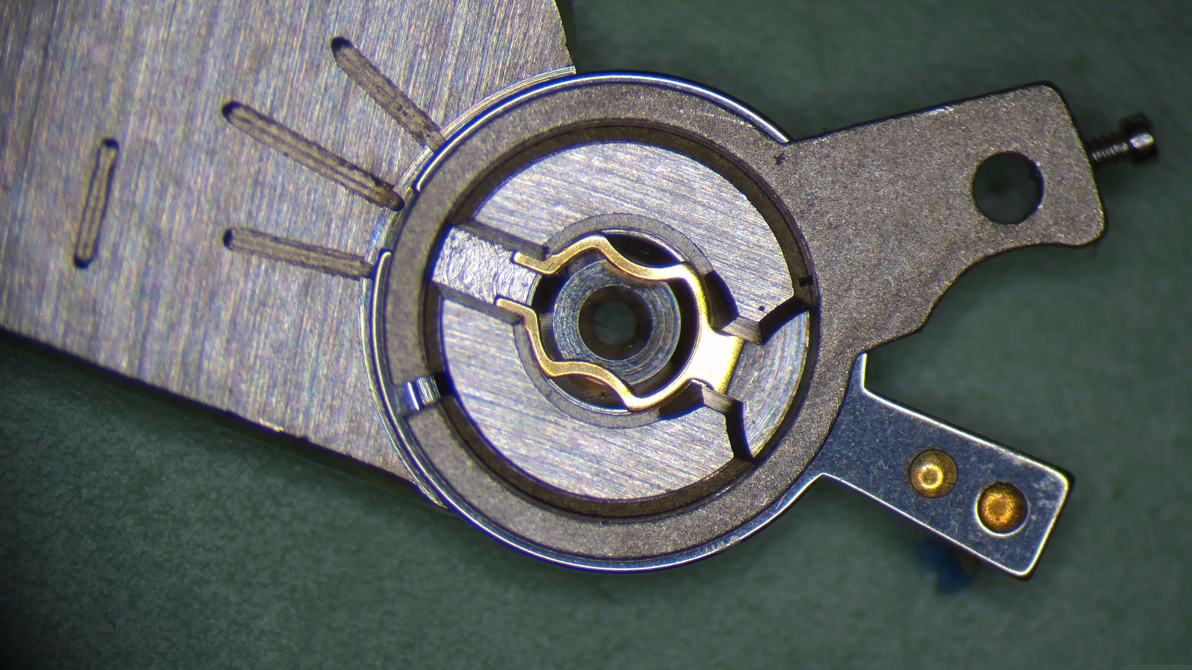 I am in the process of taking a shot at making new bridges for a Unitas 6498. I am next trying to remove the incabloc setting from the balance bridge. I am wondering if this is pressed out, and if so from which side. Under magnification the angles on the edges of the shock system look captured such that it is not clear that this is possible. Any help would be greatly appreciated. Pictures of bridge attached.
