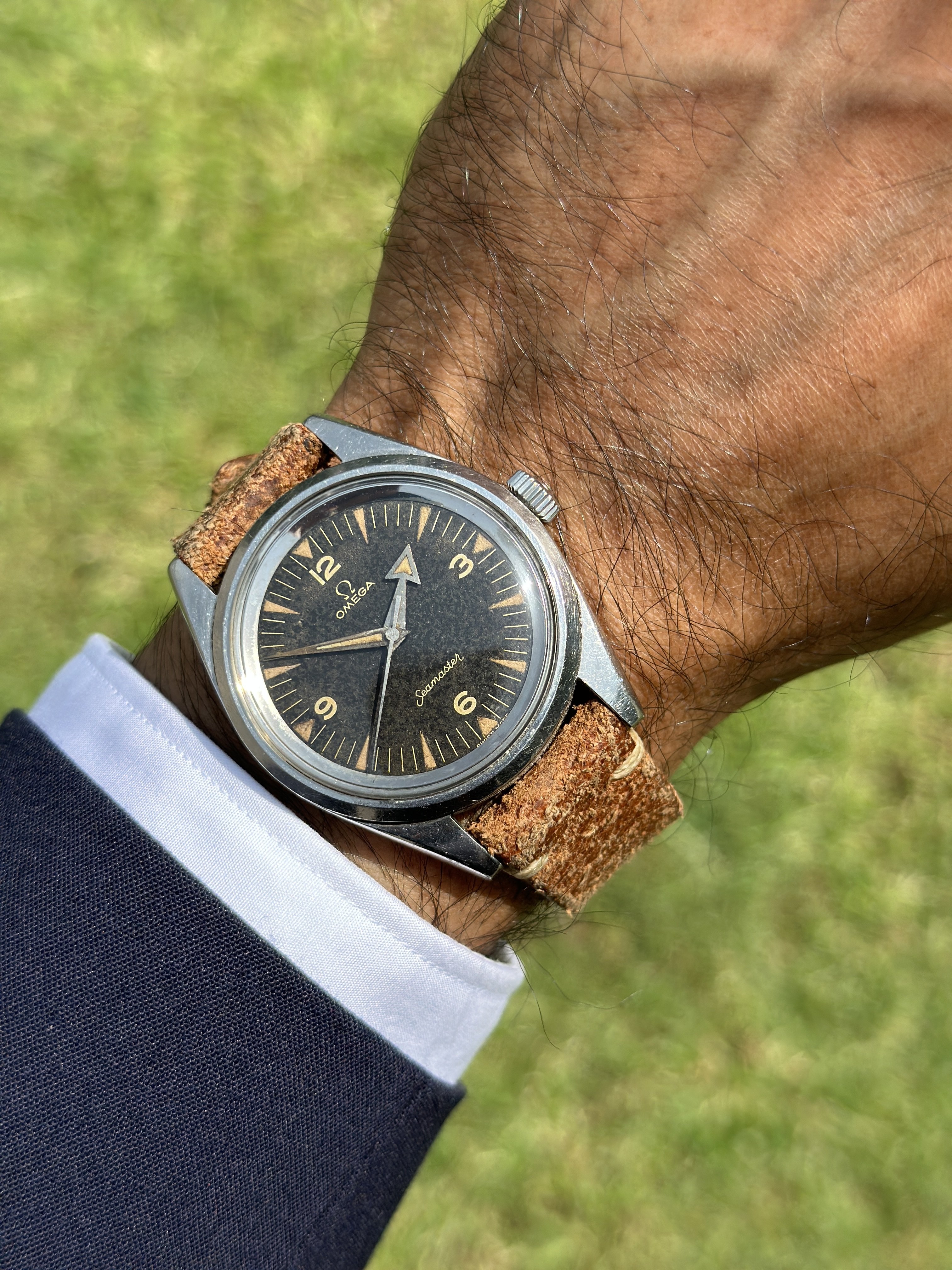 As per lore, these specially assembled watches were issued to the Pakistan Airforce with a Seamaster dial, owing to the negative connotations associated with the word "Rail," and in 2017, I officially started looking for one. There were a few offered at auctions for the next couple of years, but I was neither a competent/confident bidder nor willing to spend anywhere near where those bids usually ended.