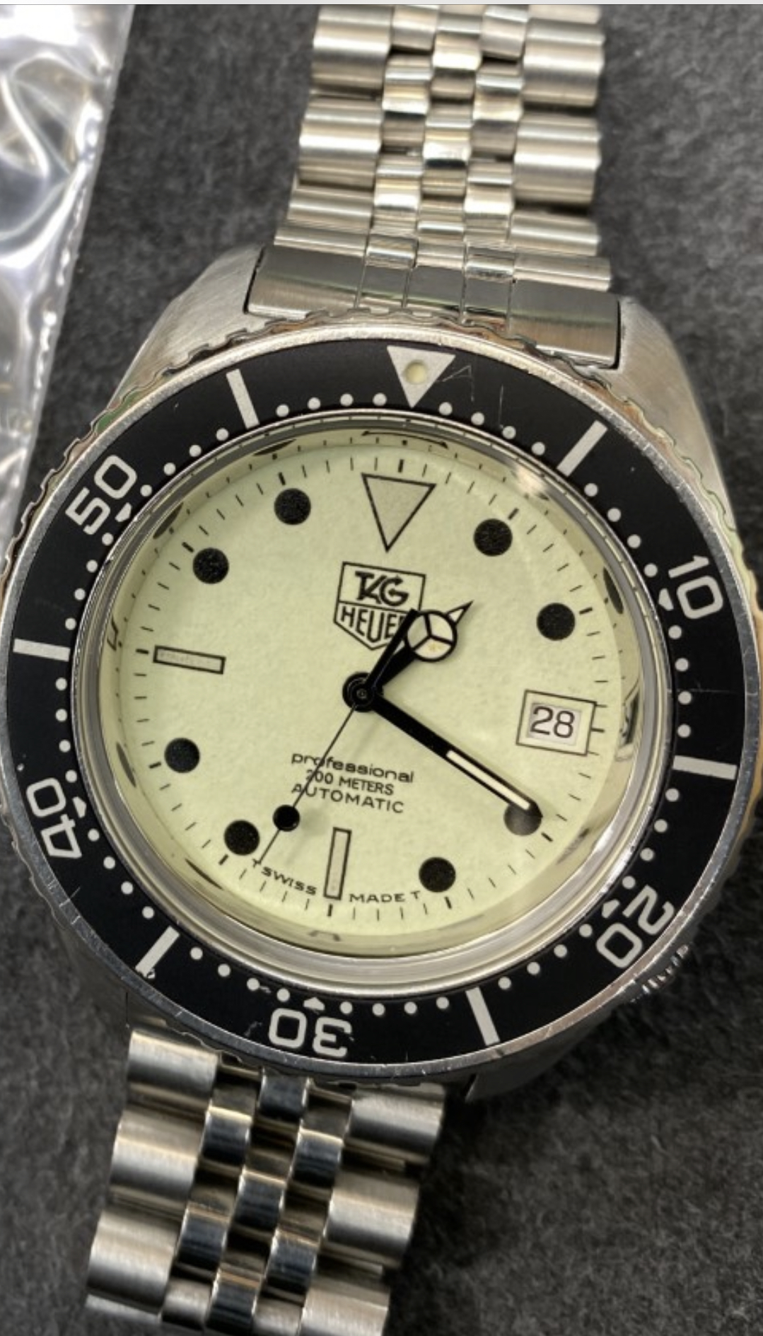 ·I had been eyeing out these night divers for a while and when I saw one of the rare 180.123s with the ETA movement, I couldn’t resist. These shared the same case and movement as the Tag/Spirotechnique version. Just got serviced and a new crystal from Justin at tagdiver1000.com and on its on its way home to me.