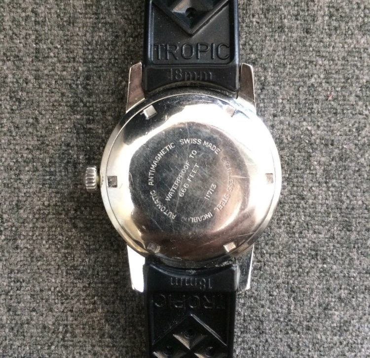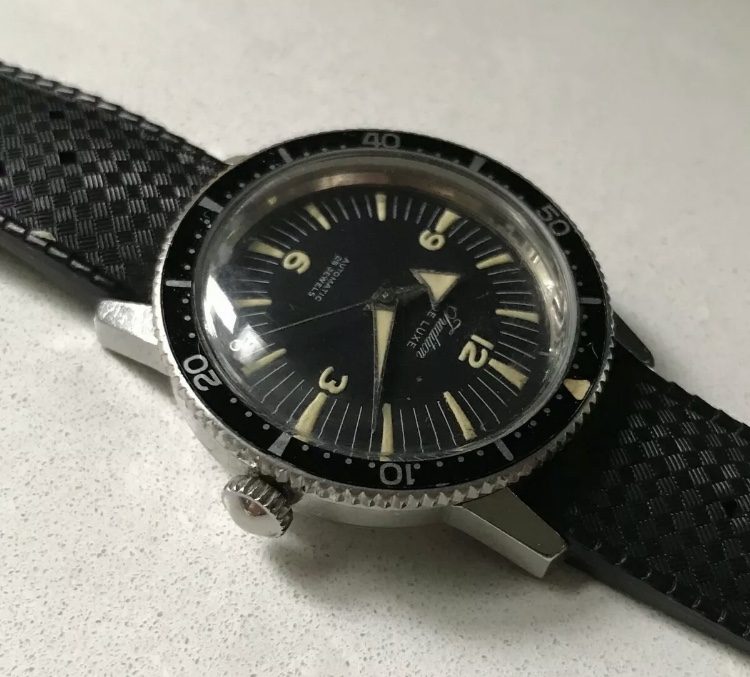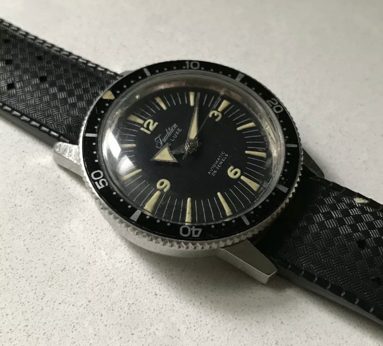 ·So I have been on a vintage diver kick- not the high line stuff, but the fun cheap divers from the 60’s. My prerequisites have been a Swiss movement of 15 jewels or more, preferably stainless case or if plated- it must be perfect, near perfect original bezel (a few scuffs or nicks is fine but no faded out wabi-Sabi for me) perfect dial, stunning lume, and it must be “running”.