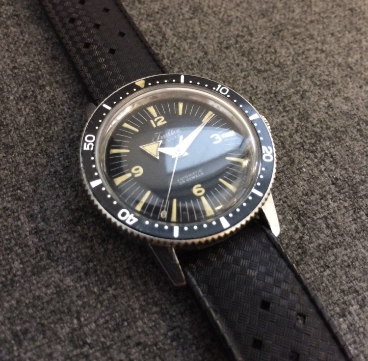 stainless case, AS movement (not sure which one) and the most unusual dial and hand combo I had seen on a Tradition watch- almost like it’s a wannabe early SM300. The price was high for these watches but not rediculous, so I just said screw it and bought it. The only other example I found like it online was this exact watch from a FS posting from WUS from 2018- it had a little less wear on it then and better pictures.