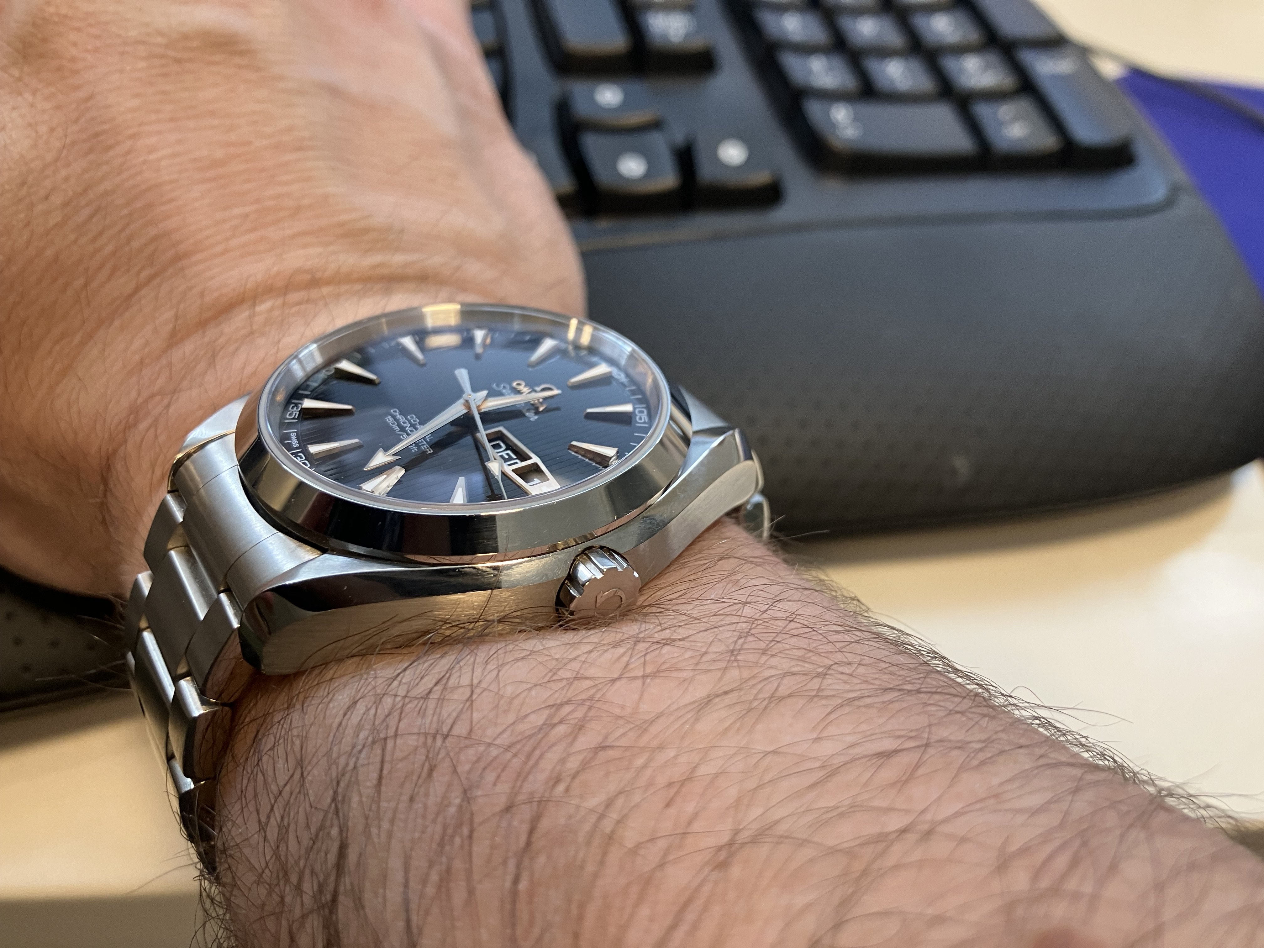 ·Took the plunge and bought (new from a long-established trusted seller at about 50% list!) the full white gold LE Aqua Terra 231.50.43.22.01.001. It seemed fated, though I'm not superstitious: the LE number and warranty date are both significant to me, one relating to my wedding anniversary, the other to my son's birthday. Such eerie coincidences didn't make it easier for me to resist. 😀