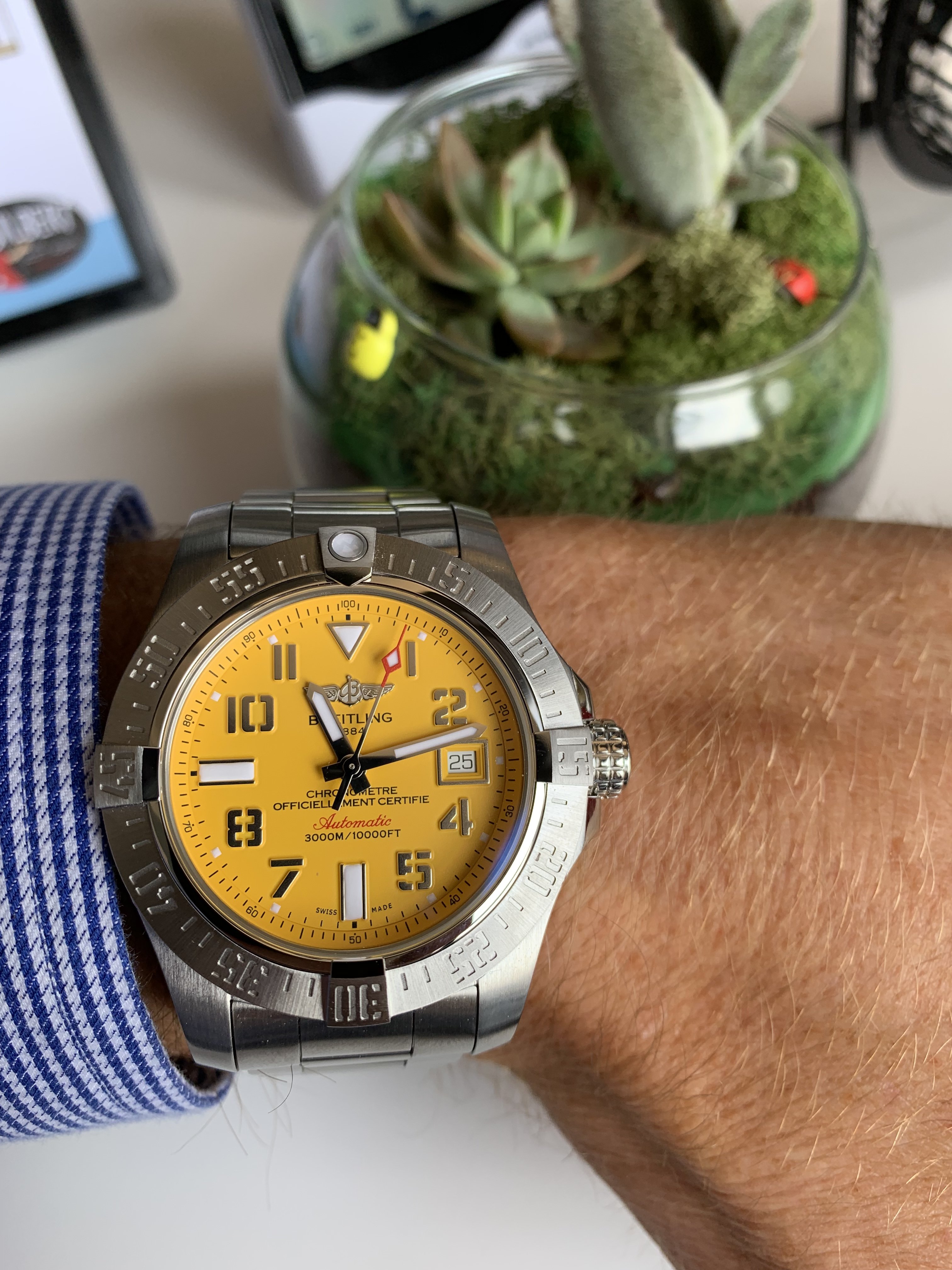 T Posts 86 Likes 119 tjs ·Apr 25, 2019 Sometimes there is a lot of pressure at work. In fact, my last watch imploded in a high pressure meeting. This classic Breitling in yellow can handle up to 3000M / 10000FT of pressure, sure to survive any future meetings! 😀