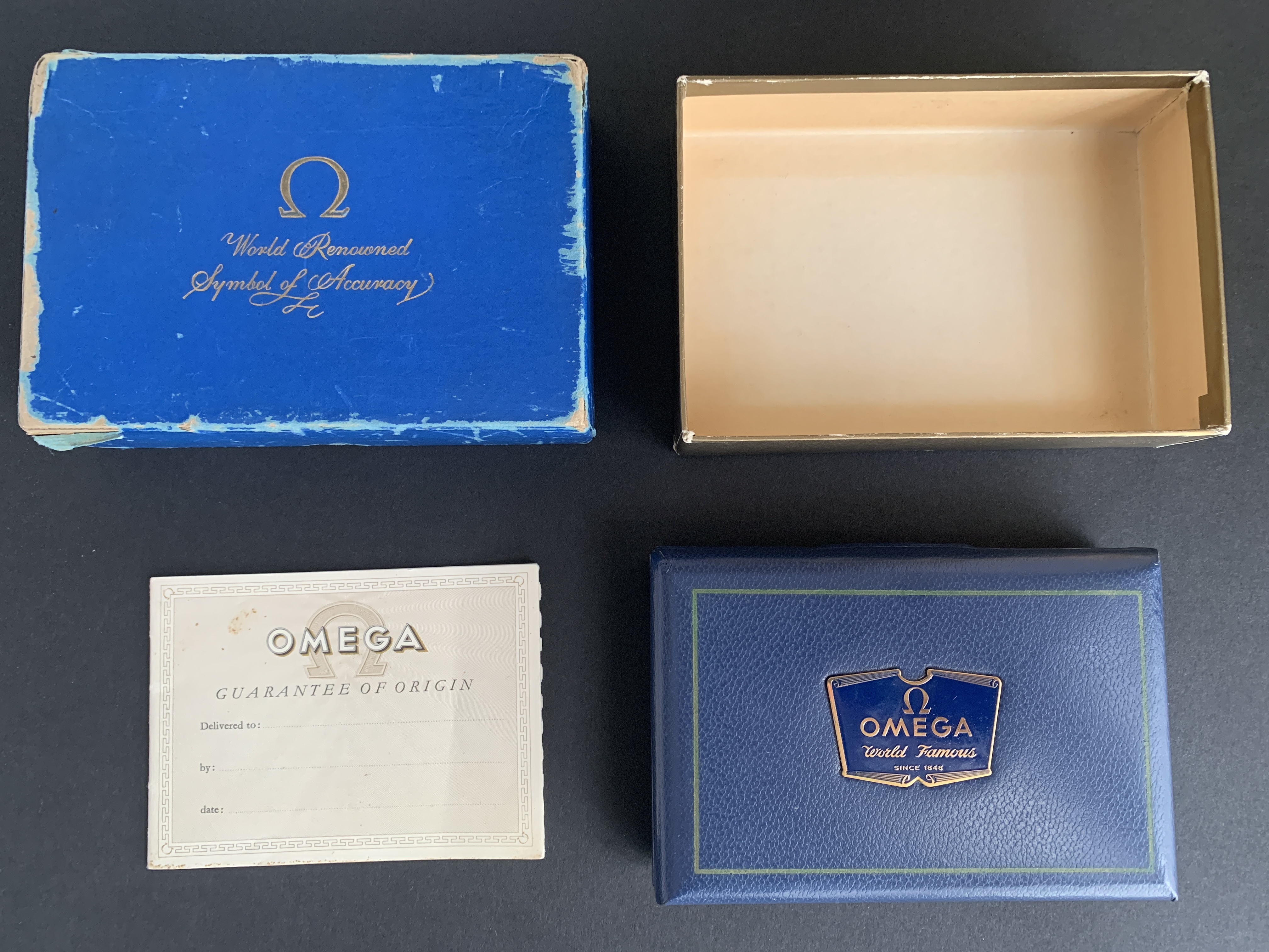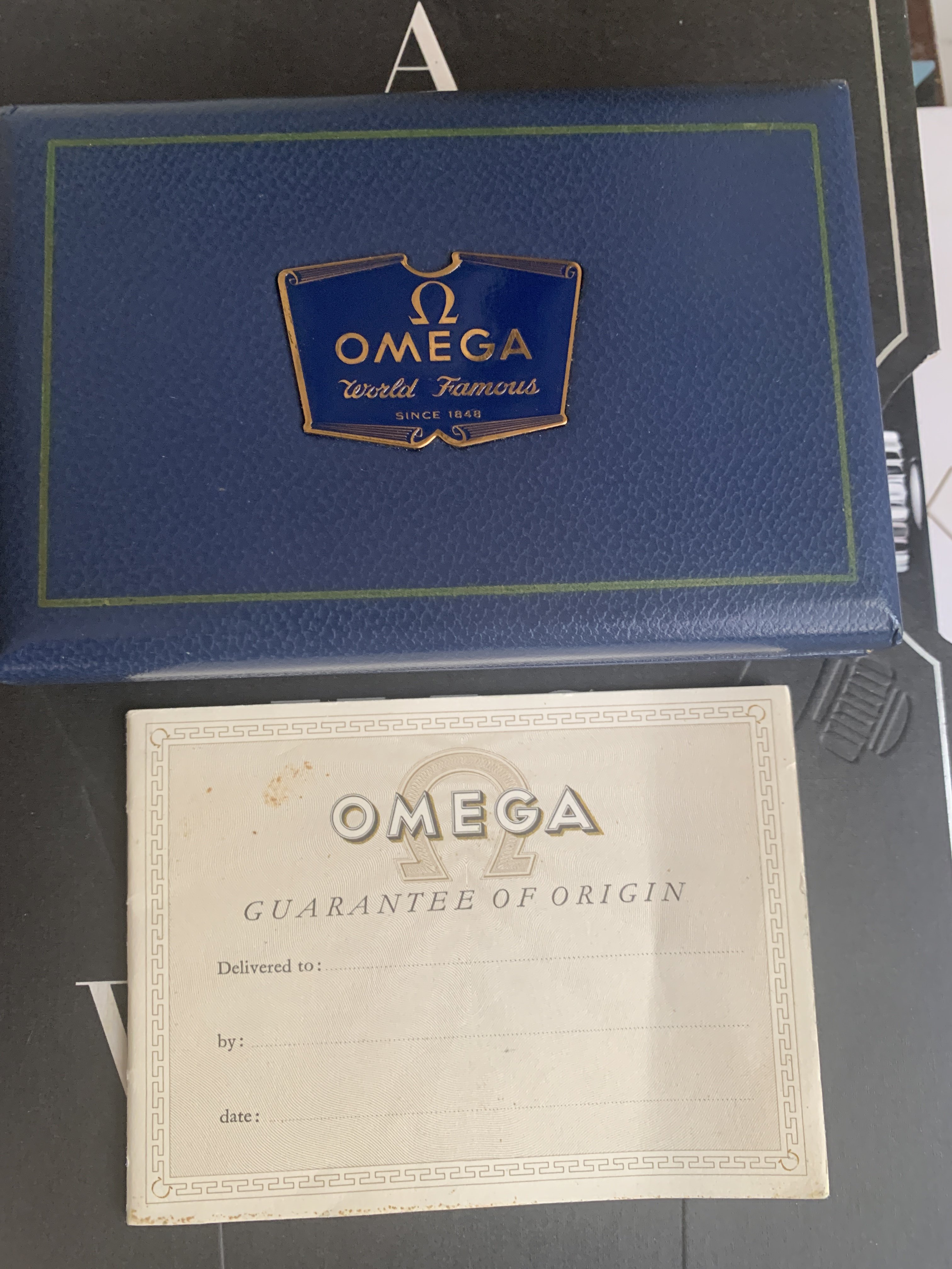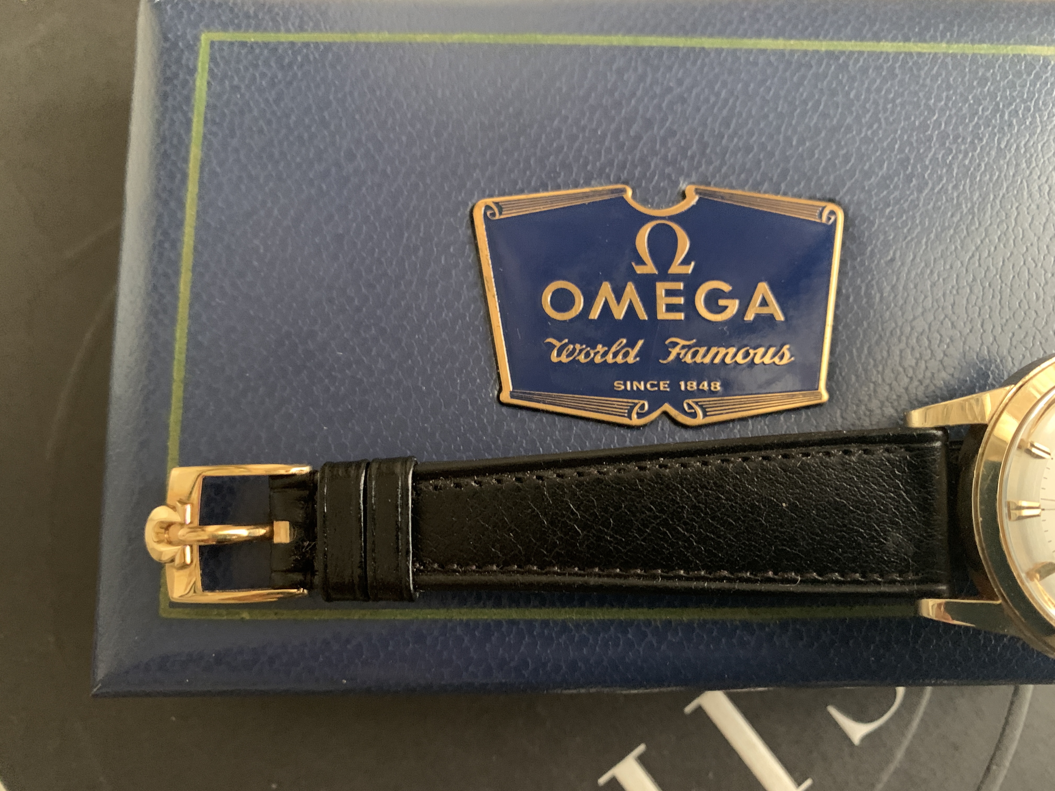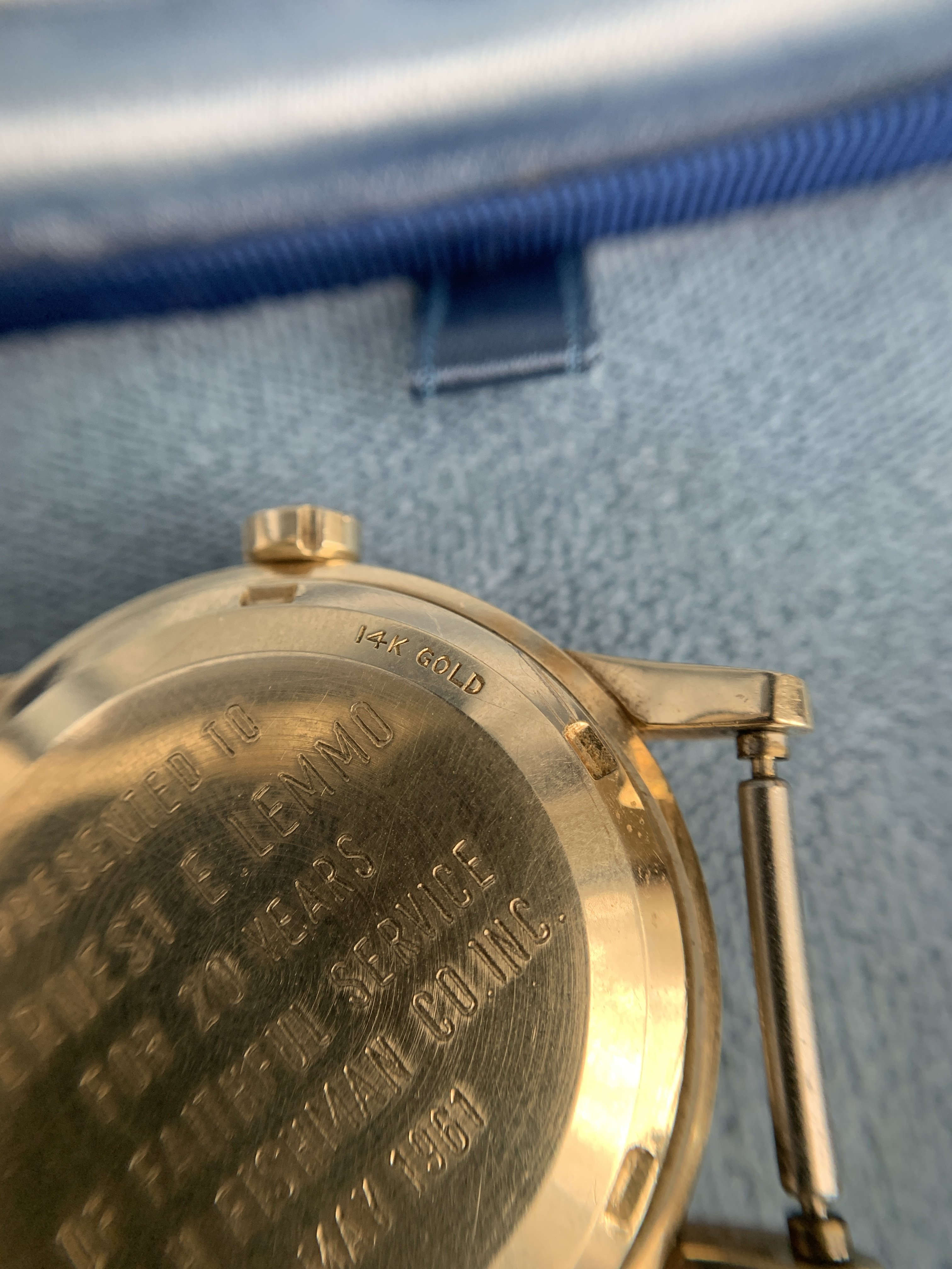 I was able to buy this from the original owner's daughter. Yup, this is a one owner. As you'll see in pics, it was gifted to her dad when he retired in 1961, and she only remembers him wearing it a handful of times on special occasions before putting it into a safe. I picked this up for a local collector friend, but he's about to close on a house so sadly (for him!) asked me to offer it to an Omega collector, so here we are!