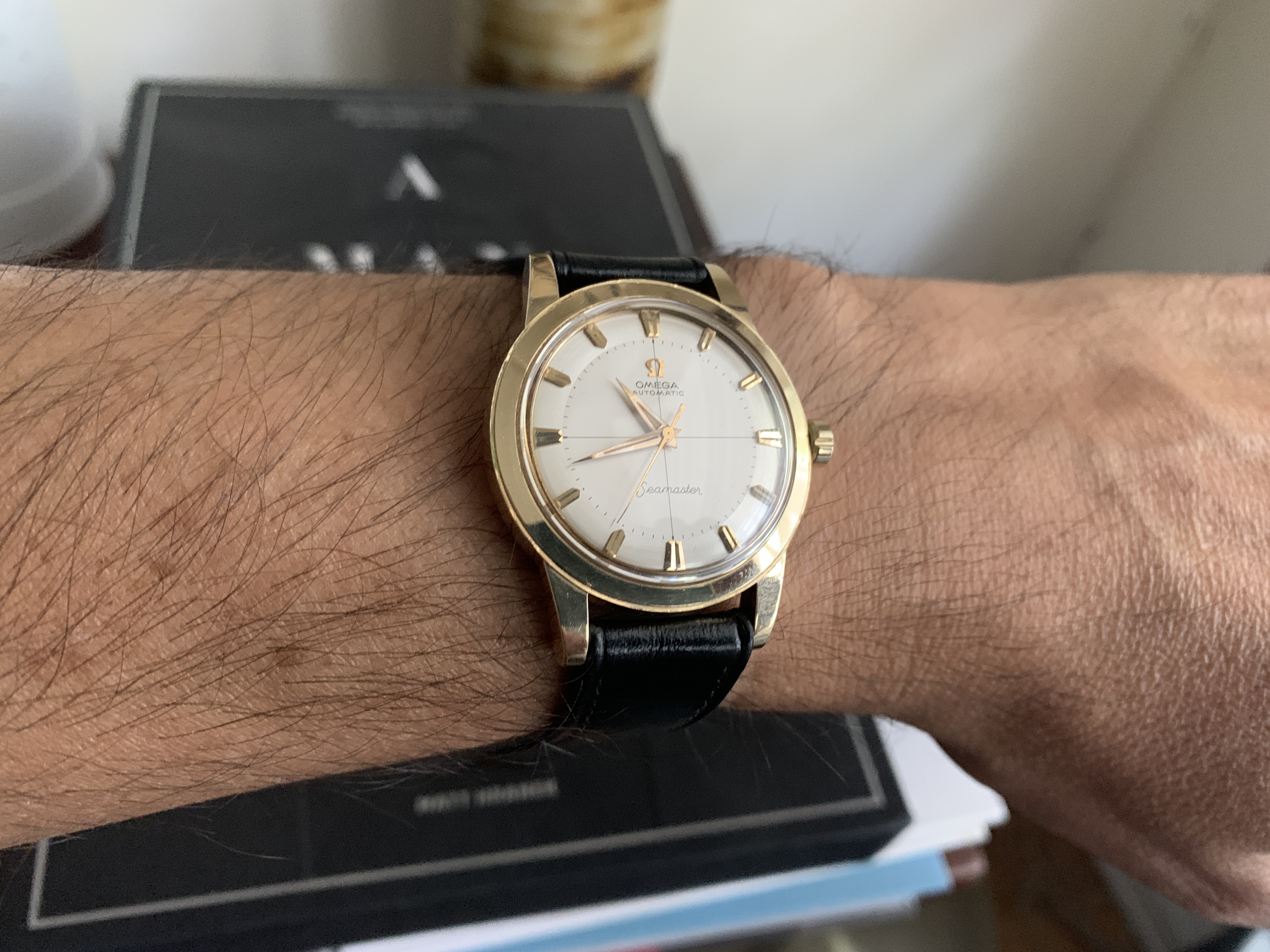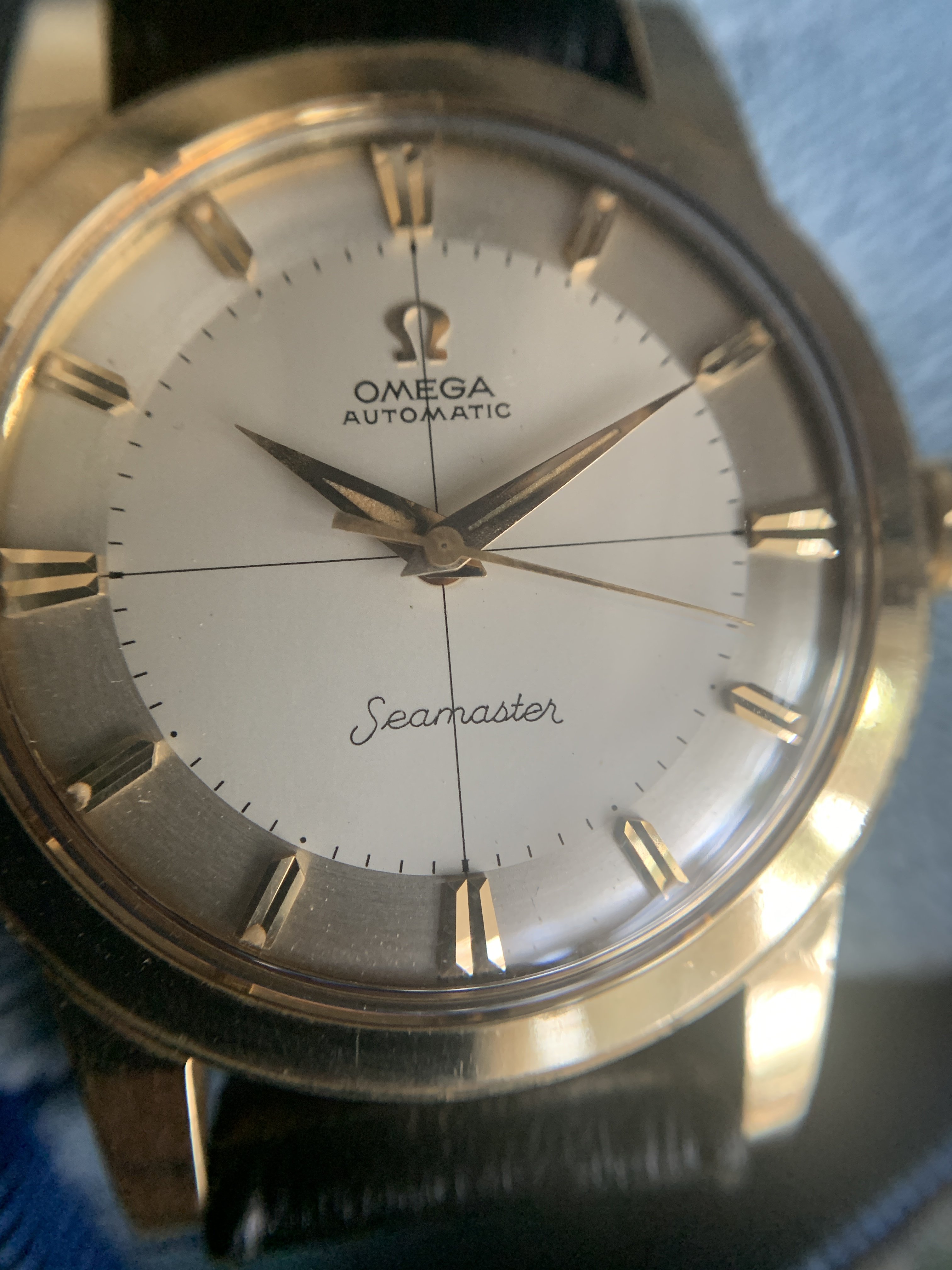 I don't think I'm overstating when I say this is an incredible find: a solid 14k gold 1950s Seamaster with all the fixings!