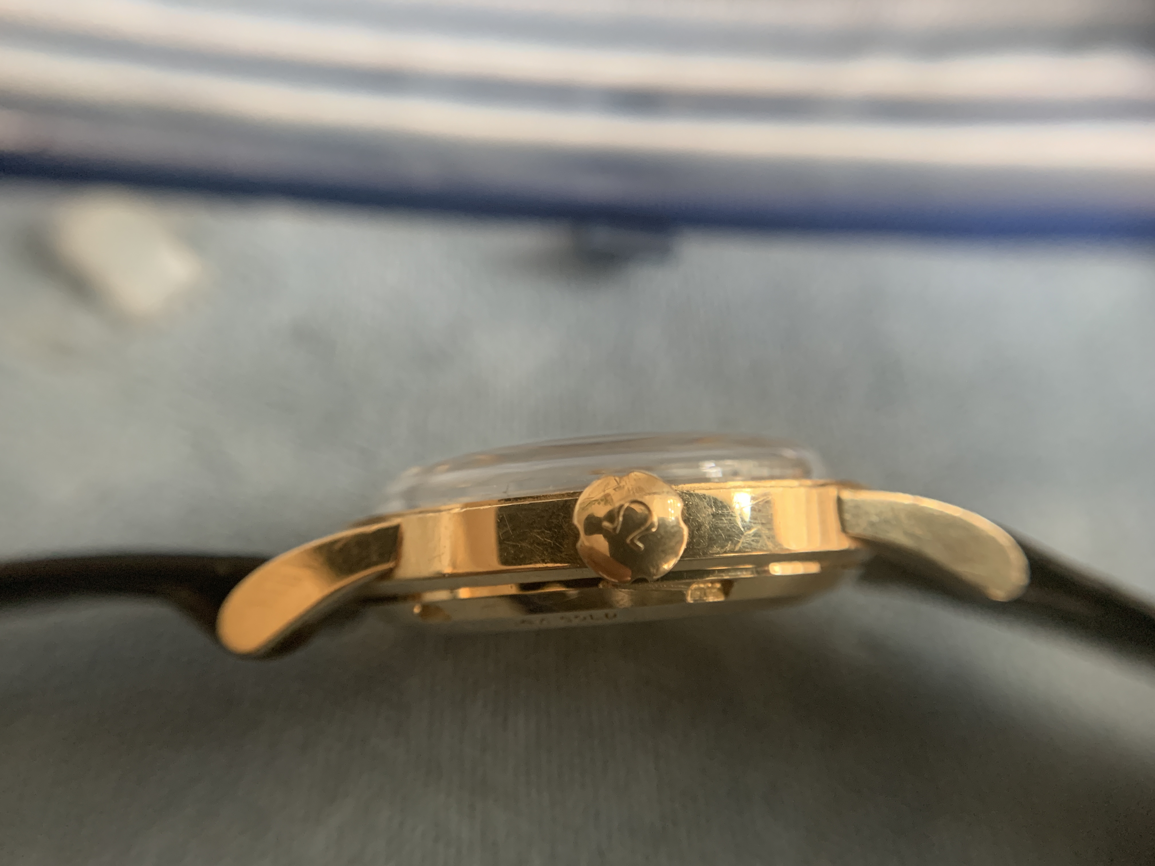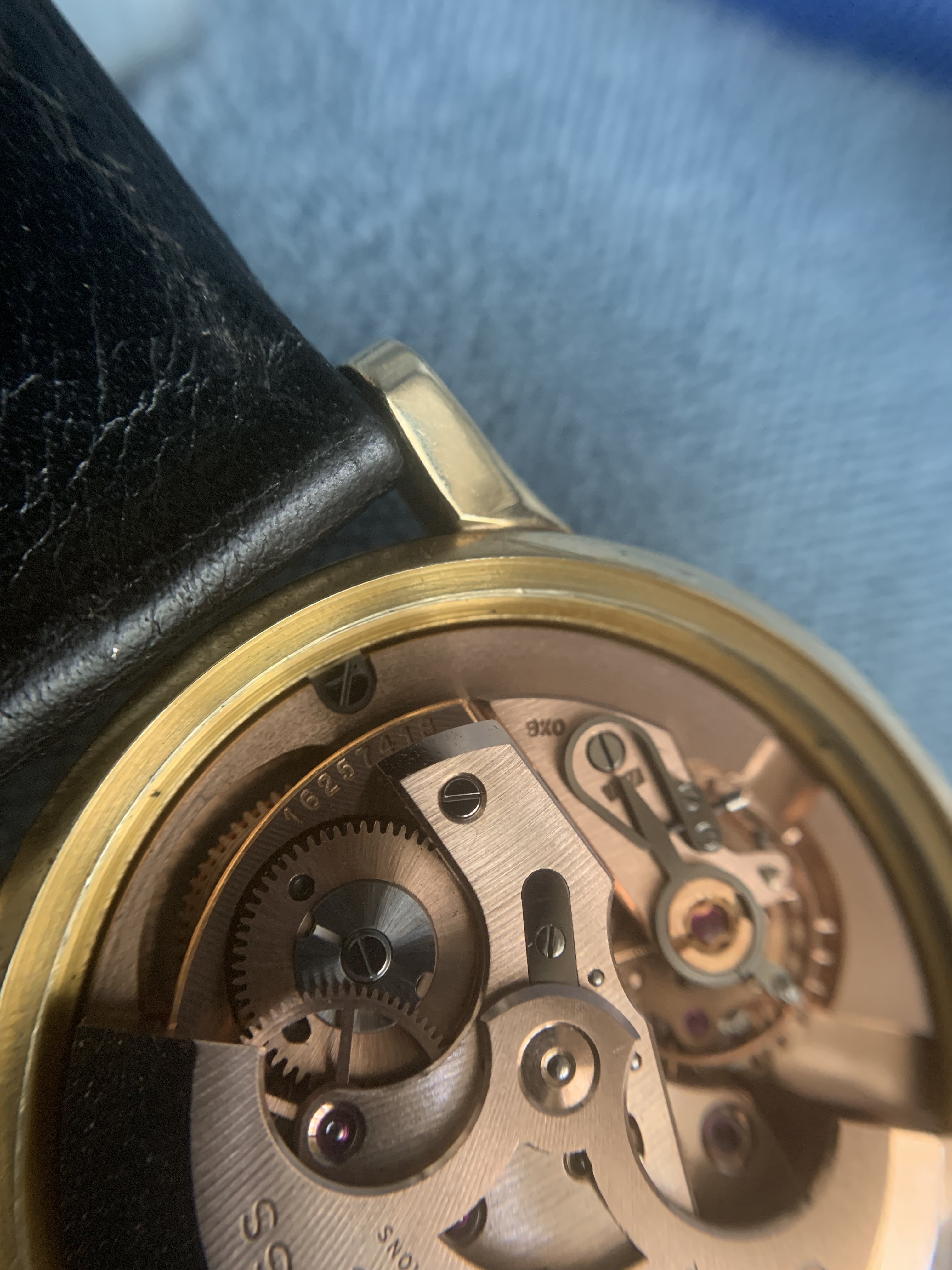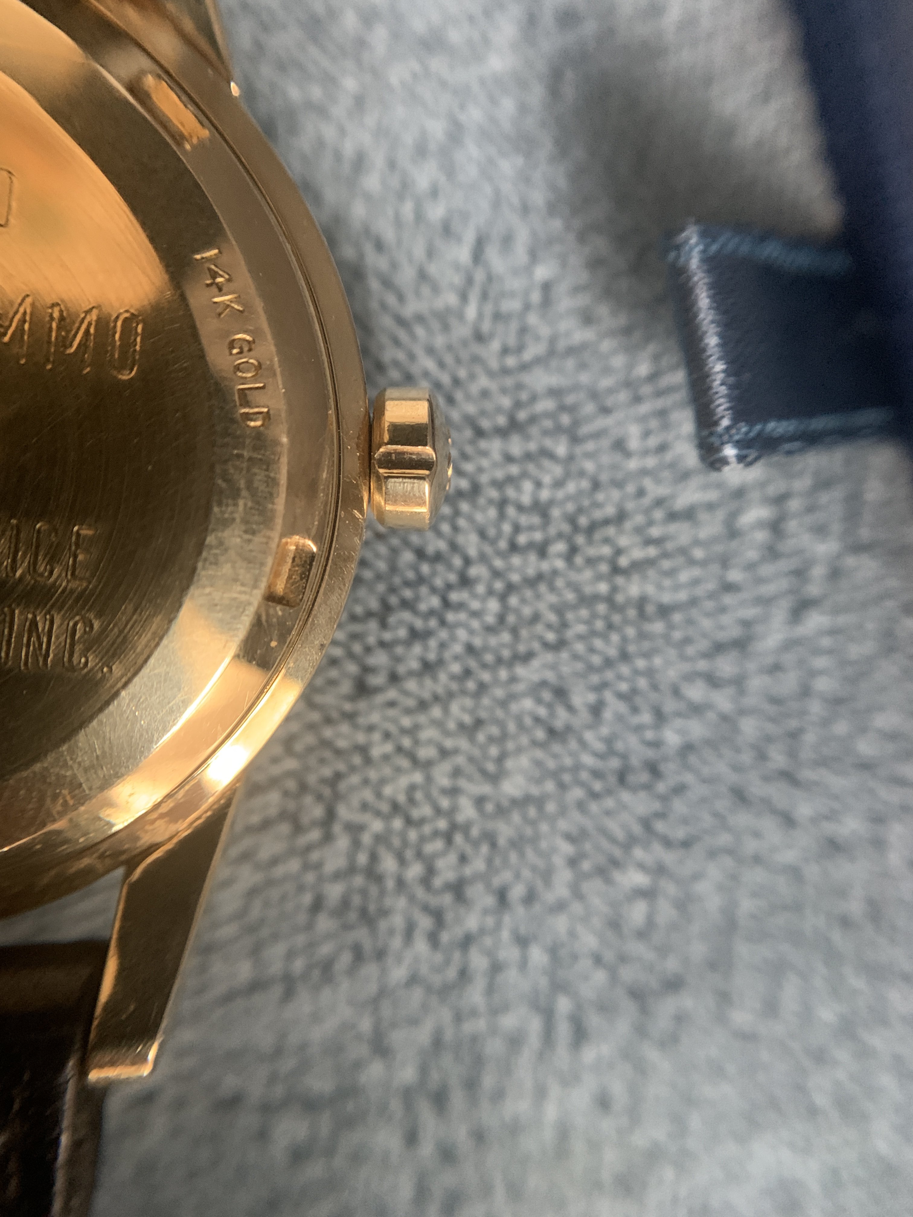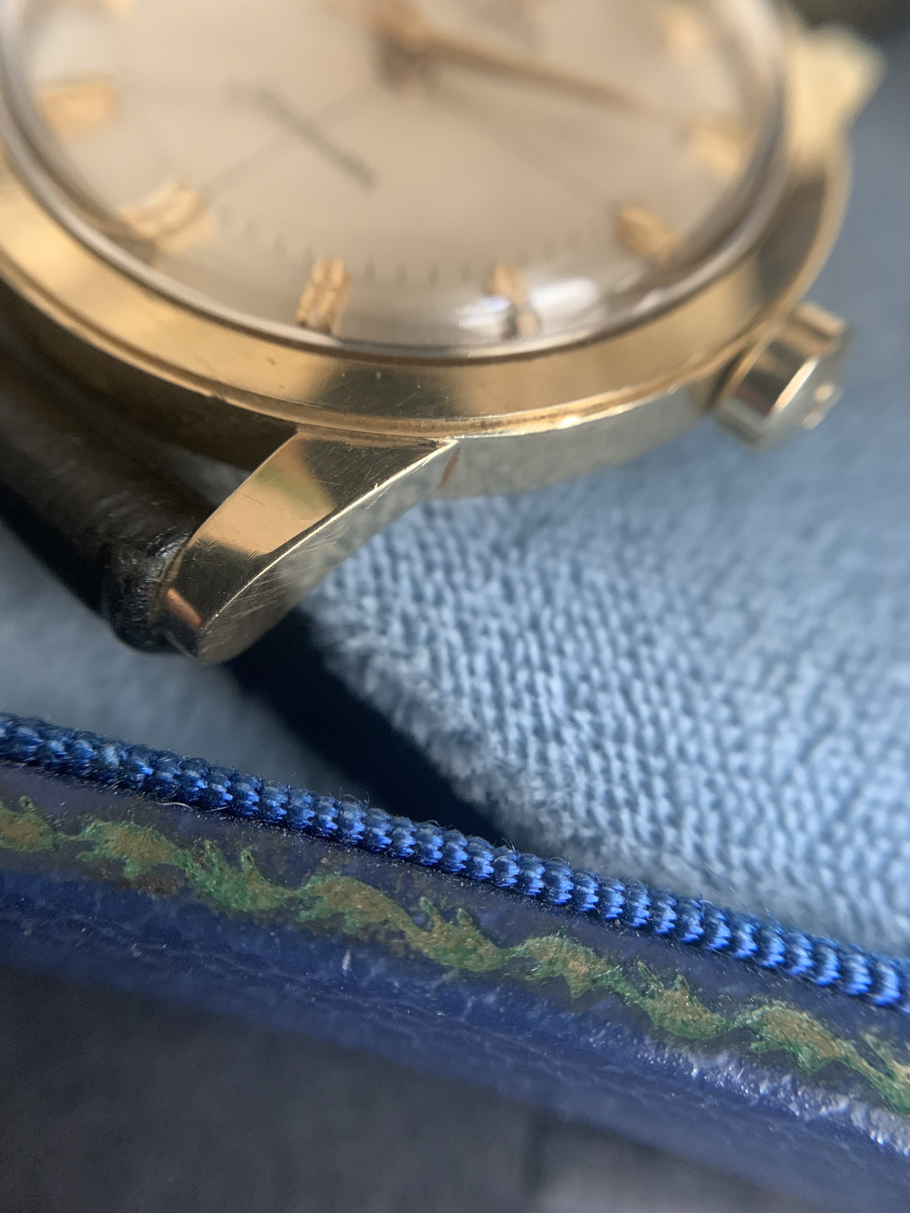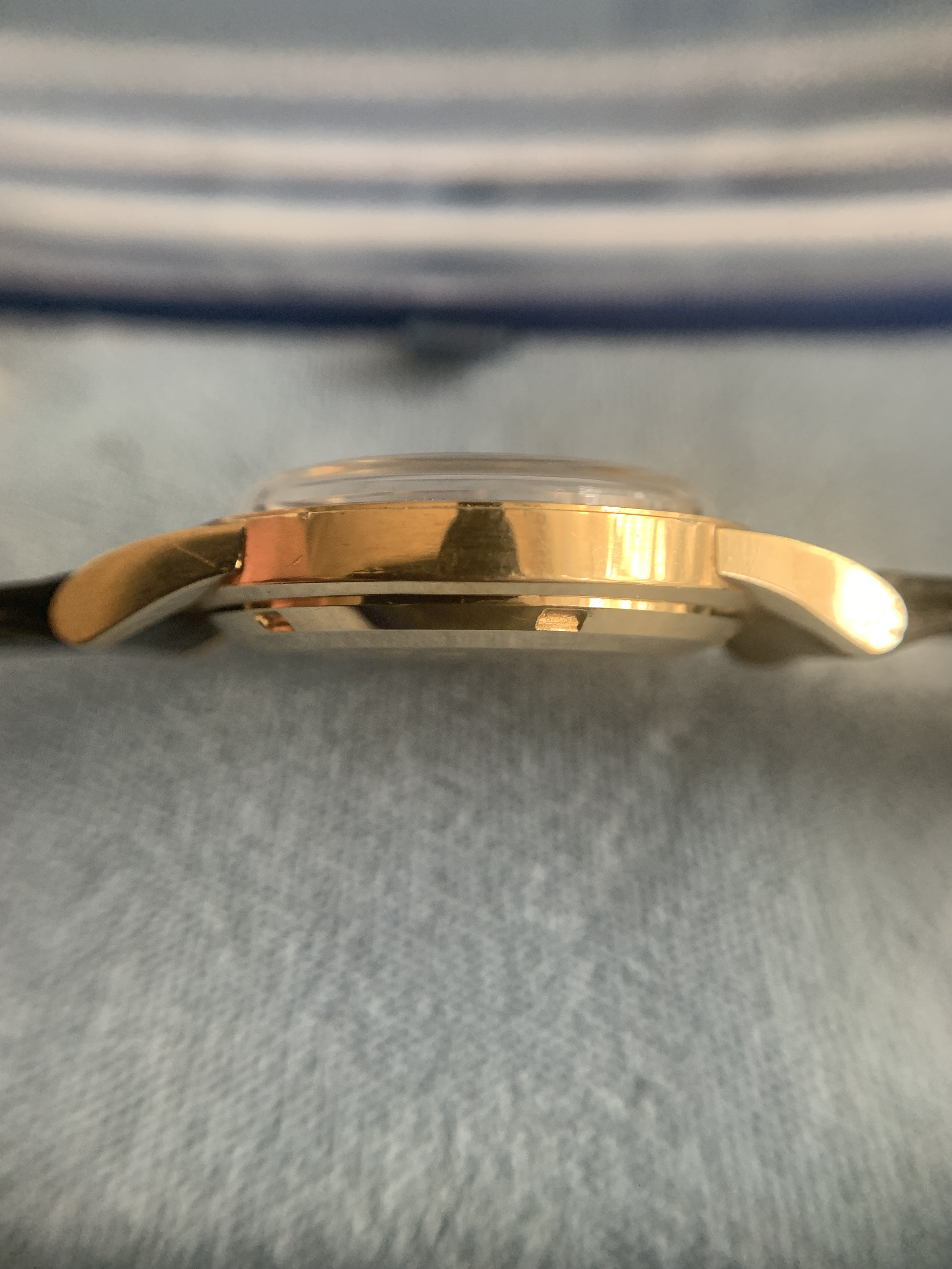 Only thing replaced that I can tell is the crystal. The owner's family said it had been in storage so before selling they took it to a watch maker to ensure it was working and he put on a fresh crystal. The strap had also deteriorated, so I found a NOS strap and buckle to fully do this beauty justice: