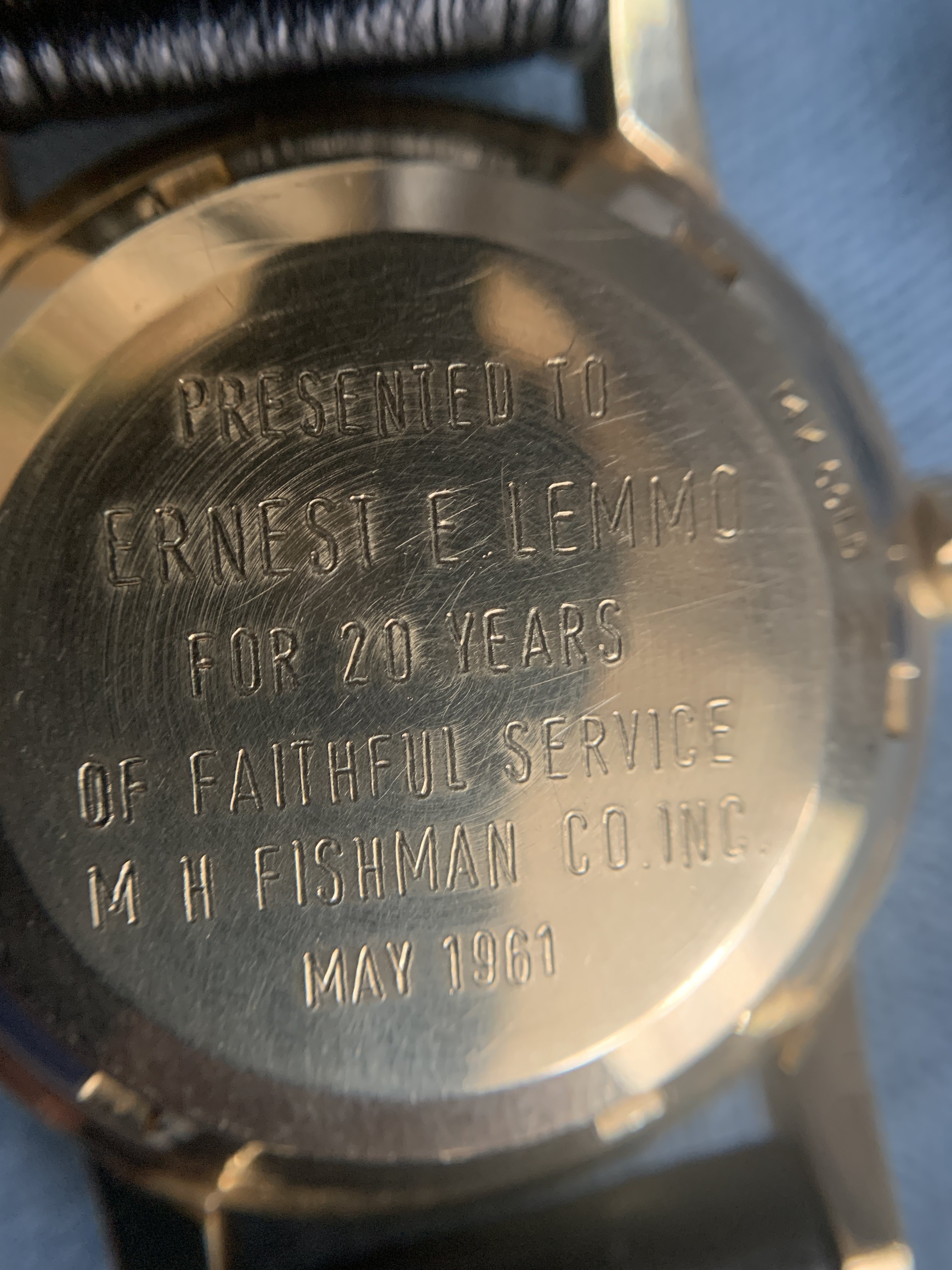 Yup, that's an engraving on the back, showing it was gifted it to him in 1961.