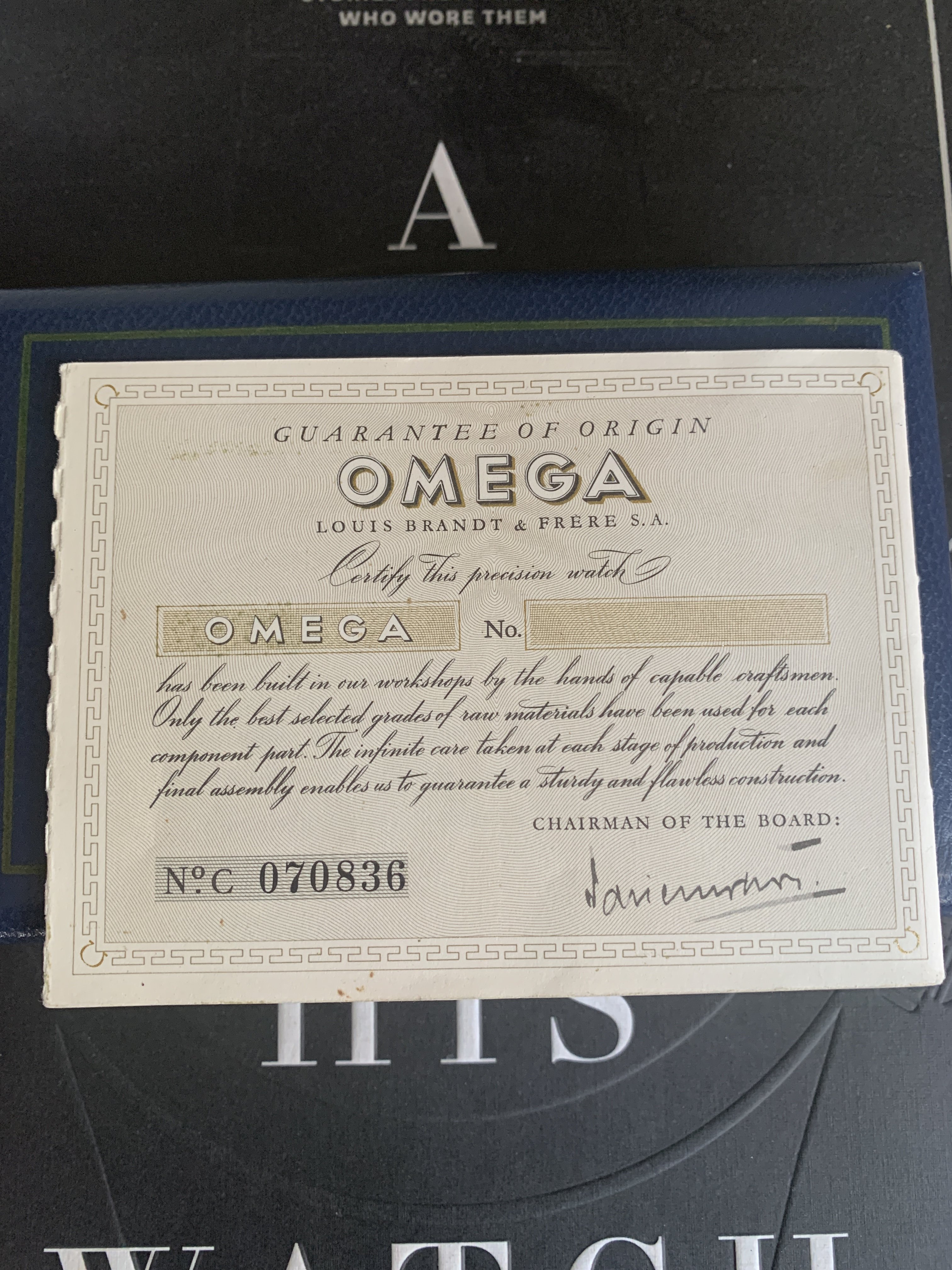 For those research nerds like me, found this (showing the company went bankrupt about 13 years after this... maybe gifting too many gold Omegas???)