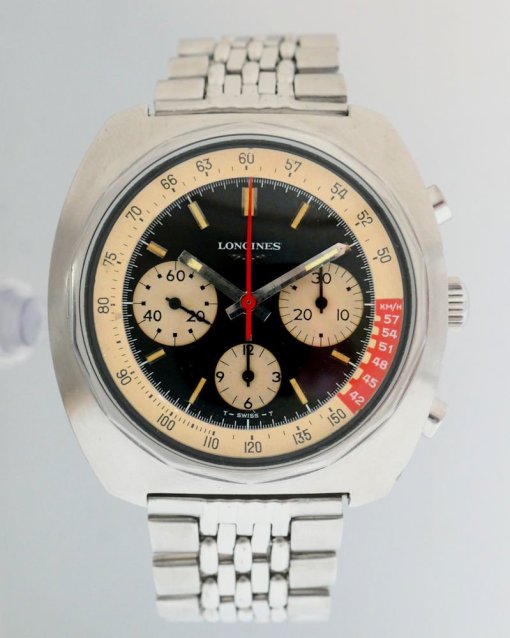 路I recall a pal of mine has a big size funky looking Longines chronograph on it's original bracelet and as memory serves me this is a picture of a similar watch I found from the net.