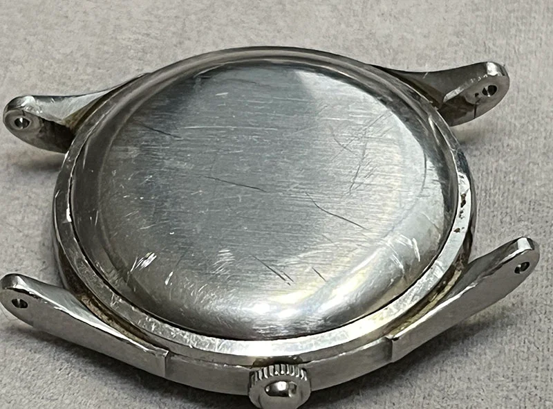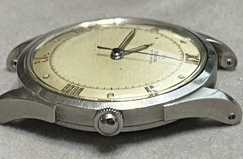 The band was a simple Hadley stainless stretch that I removed, though in remarkably good shape.