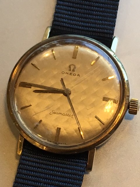 It is the early 60s Seamaster "pre DeVillle" with unishell case, hand-winding cal. 600. The chessboard dial look original IMO, I love how these dial reflect under the sun.