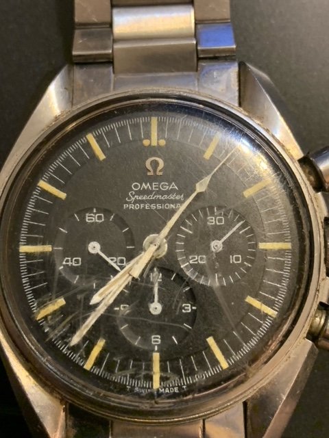 ·I inherited a Omega Speedmaster Professional and I cannot find a serial number of identify a year of manufacture. Band number 516 and an other number of 1039 at clasp. It is not running correctly and I would like to get it repaired. I can't and have no desire to remove the back. any help would be appreciated. see attached photo. I know the outer bezel must be missing. It runs about 10 seconds and then stops. Chronograph seems to be working erratic also but, is working.