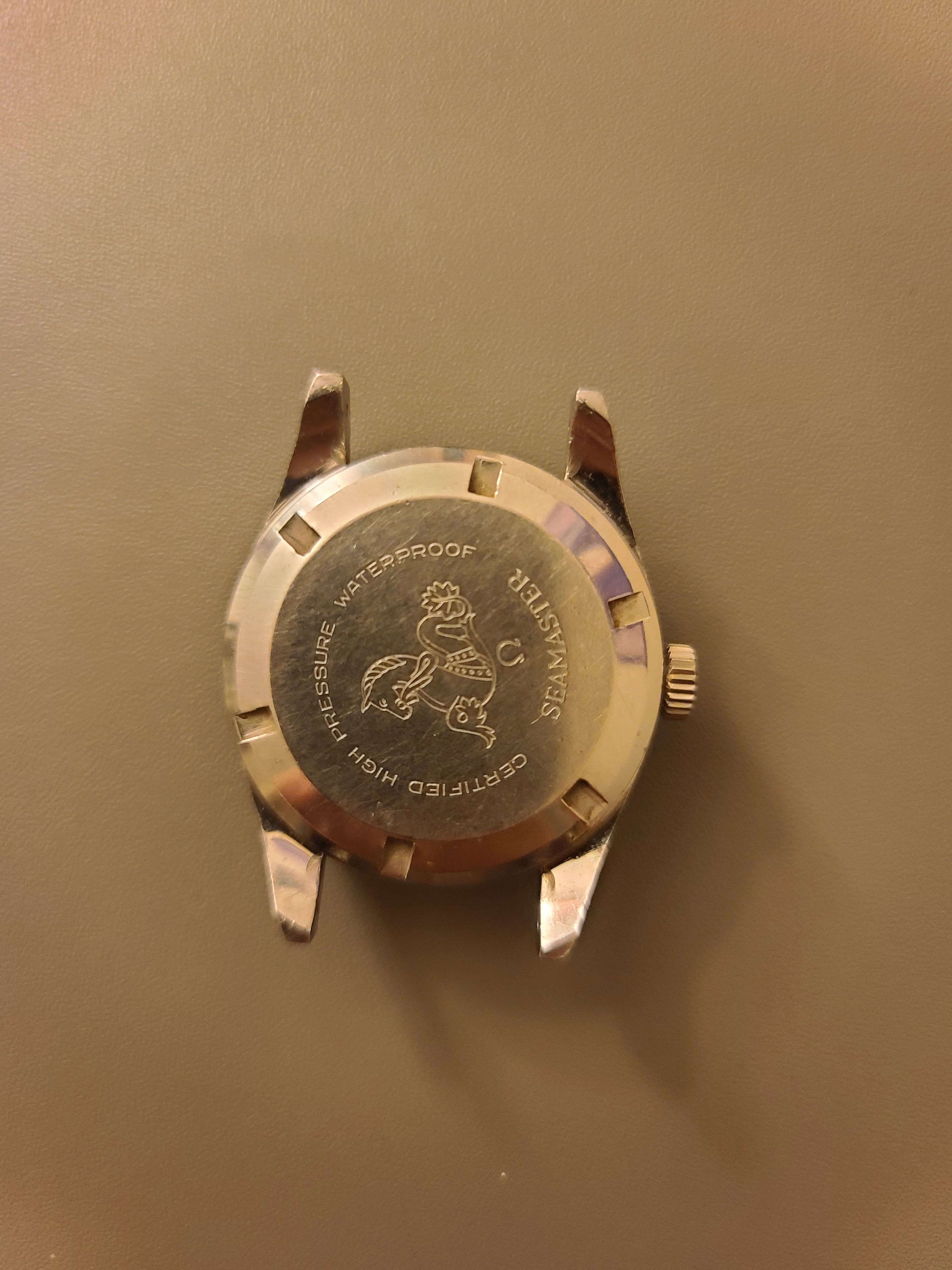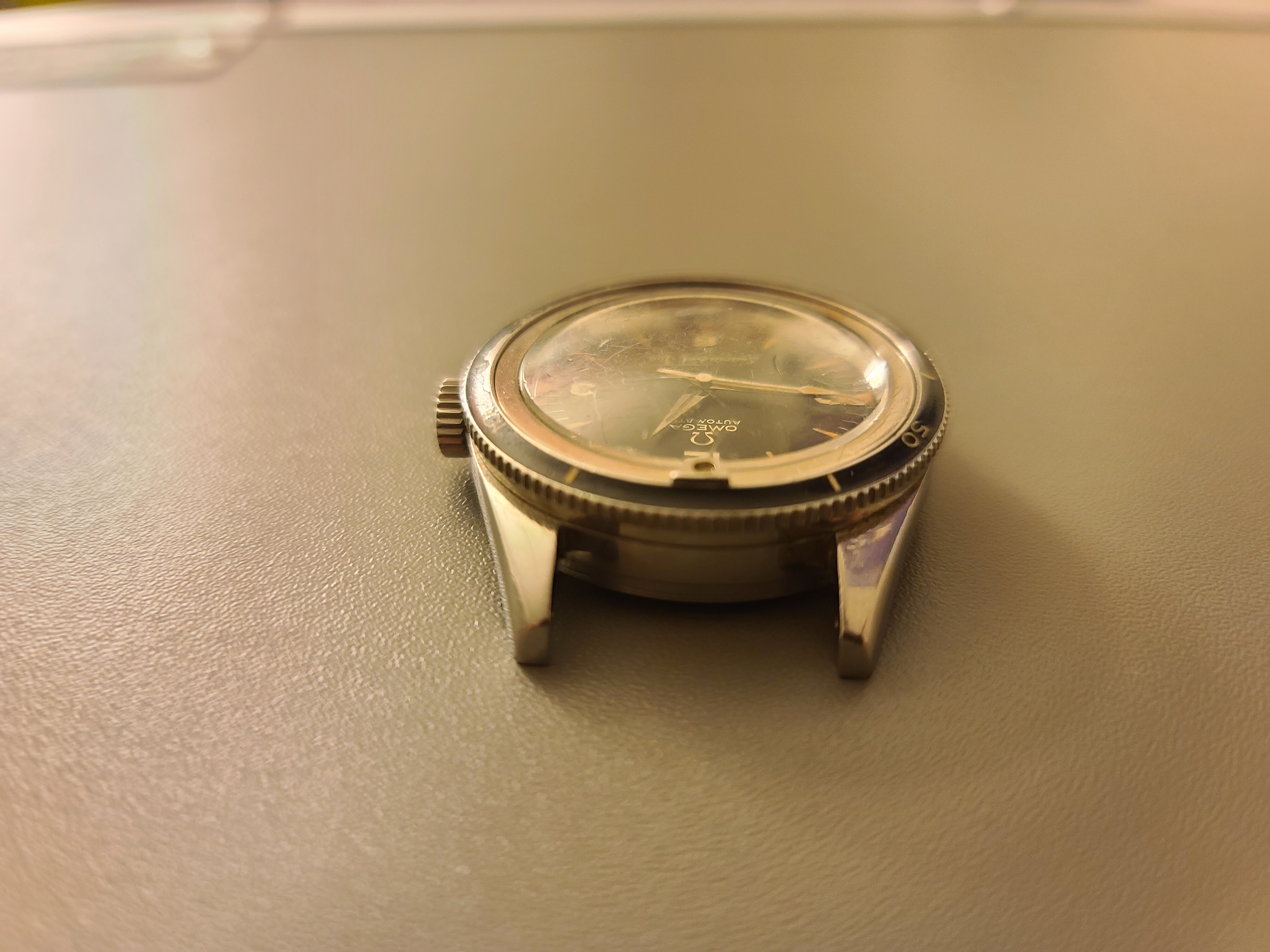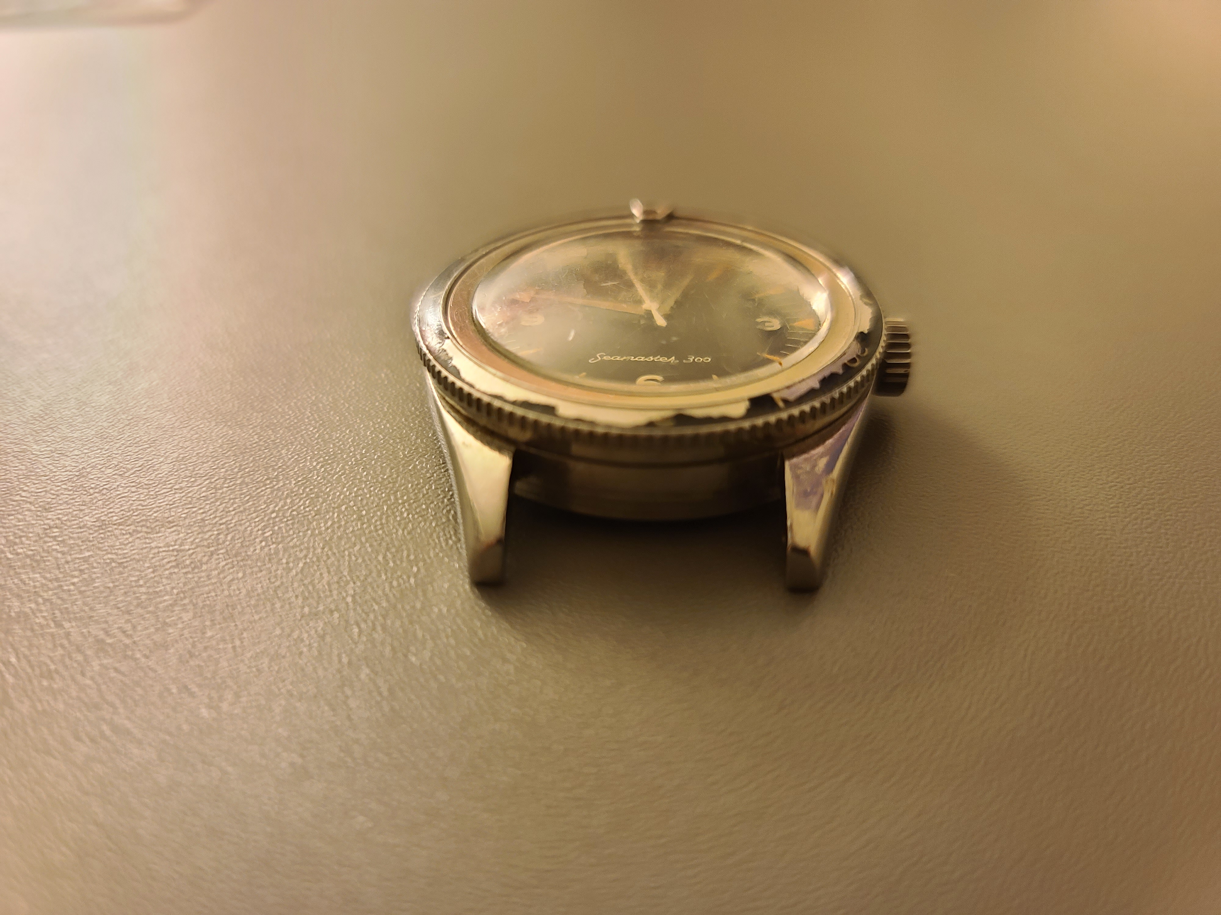 Unfortunately, I don't have a watch case opener yet, so I can't see what reference this is. Anybody happen to know? I've seen a lot of Seamaster 300's with this bezel, but very few with the same dial and hands.