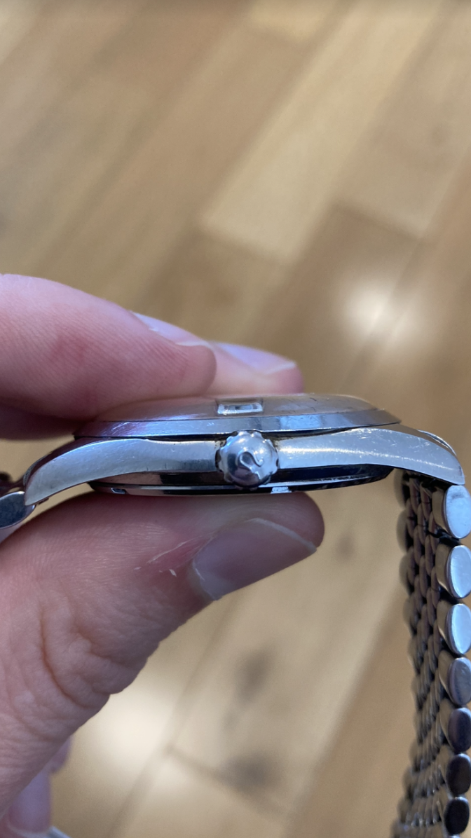 Movement: not running, however the hands do move when setting the time and the date does change when going past midnight or when pulling out the crown.