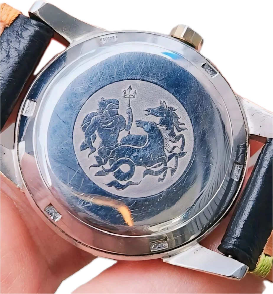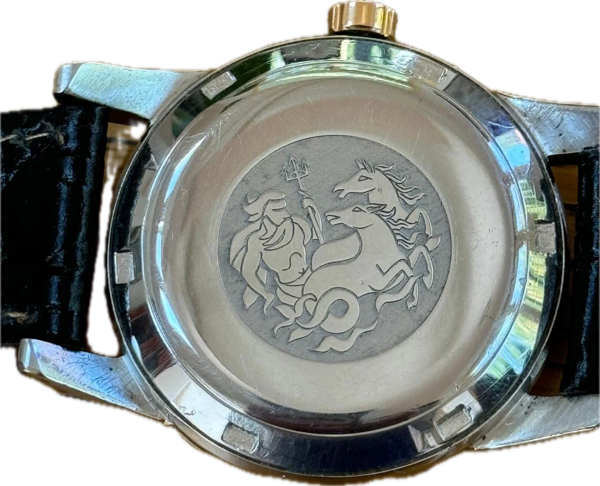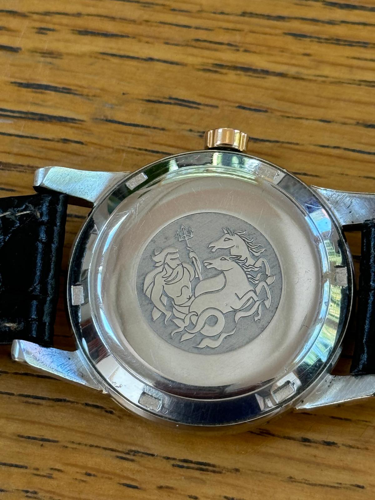 While this is not my watch, I am specifically interested in the case back etching as I have not encountered this specific variant before and am particularly keen to learn if any of you have come across similar case back etchings depicting King Neptune in your collections, or if you have any additional information about its rarity and/or significance.