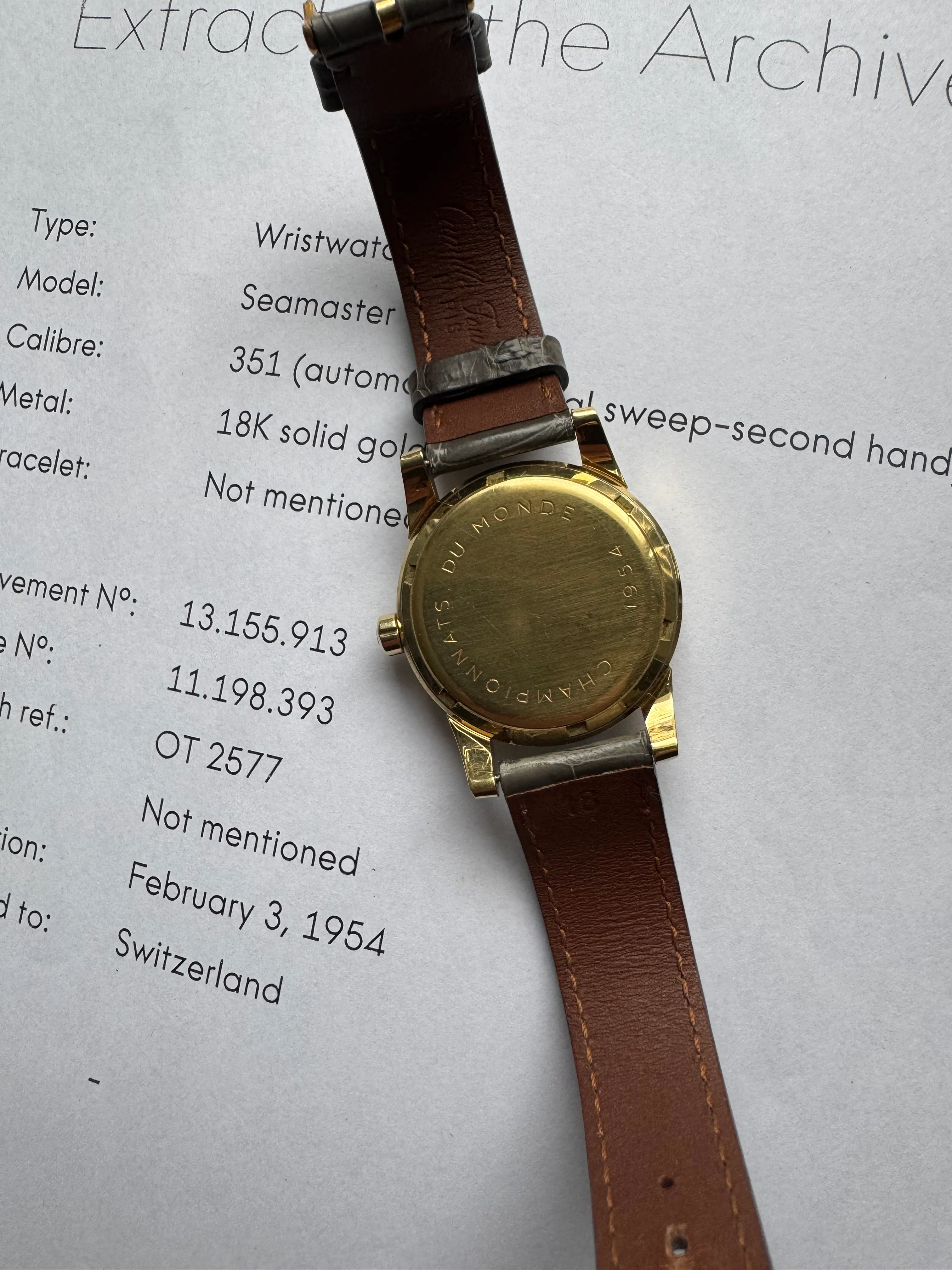 I recently bought an 18ct vintage Omega with a very interesting inscription on the case back - ‘Championnats Du Monde 1954’