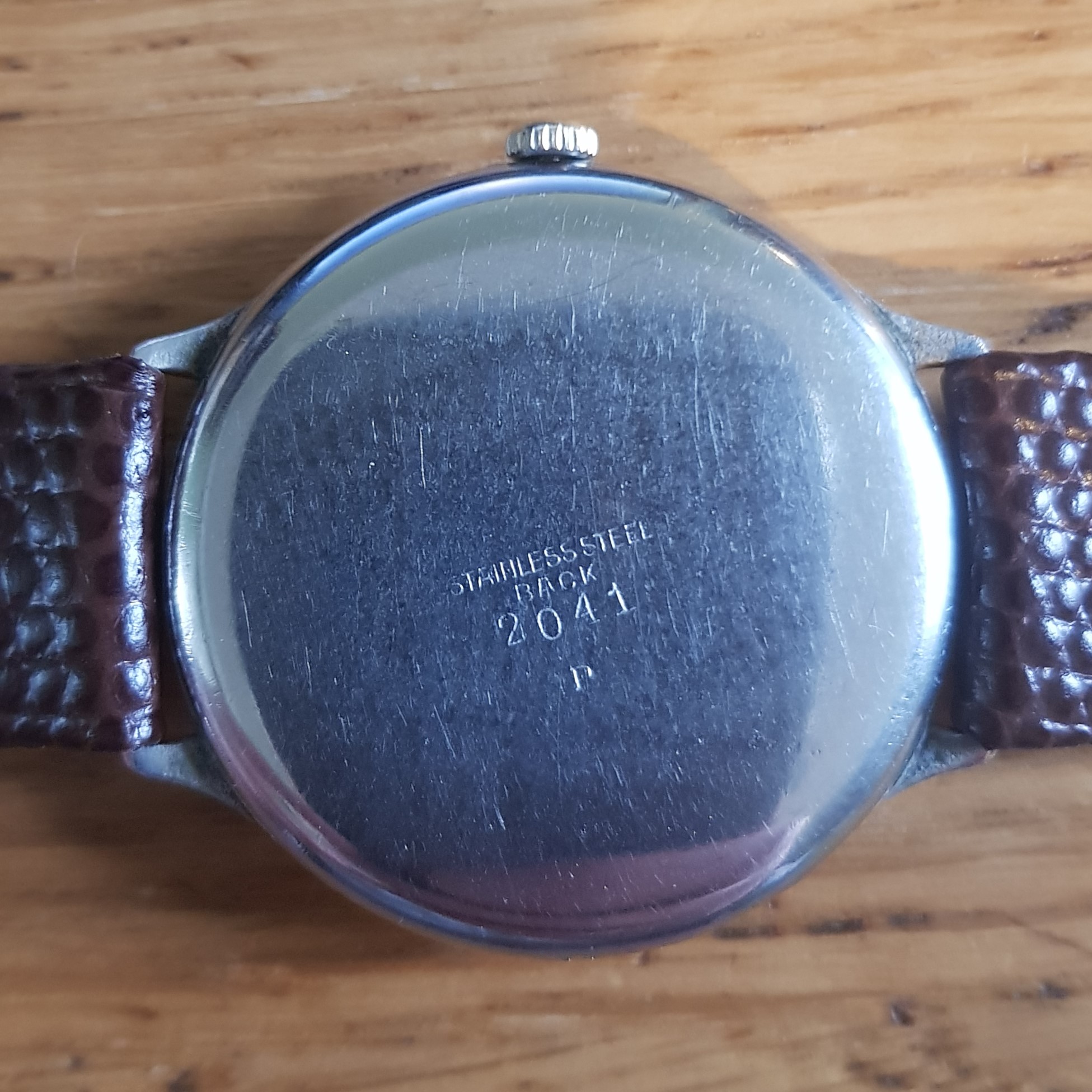 2021P is the case number. I have records of 10 watches in 2021 case from 1938 to 1950, I own 3. I think yours is late 40s. The design changed slightly over the years. If you have the serial number from inside the case back I can date it more accurately for you.