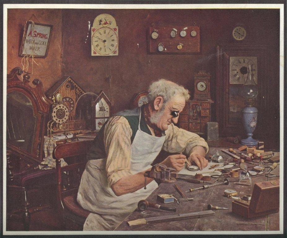 About 10 years ago, I attended an estate sale in a small rural town. Not looking for anything in particular. Then this item popped up, and I out bid a lady who wanted it very badly. The artist is an English Chap, Charles Spencelayh who has a large gallery of his work at the Tate Gallery, in London, England. But this is one work of his that the Tate Gallery doesn’t have. The lithograph is on an unused 1940 calendar from a local watch material supplier (long since). I love the picture.