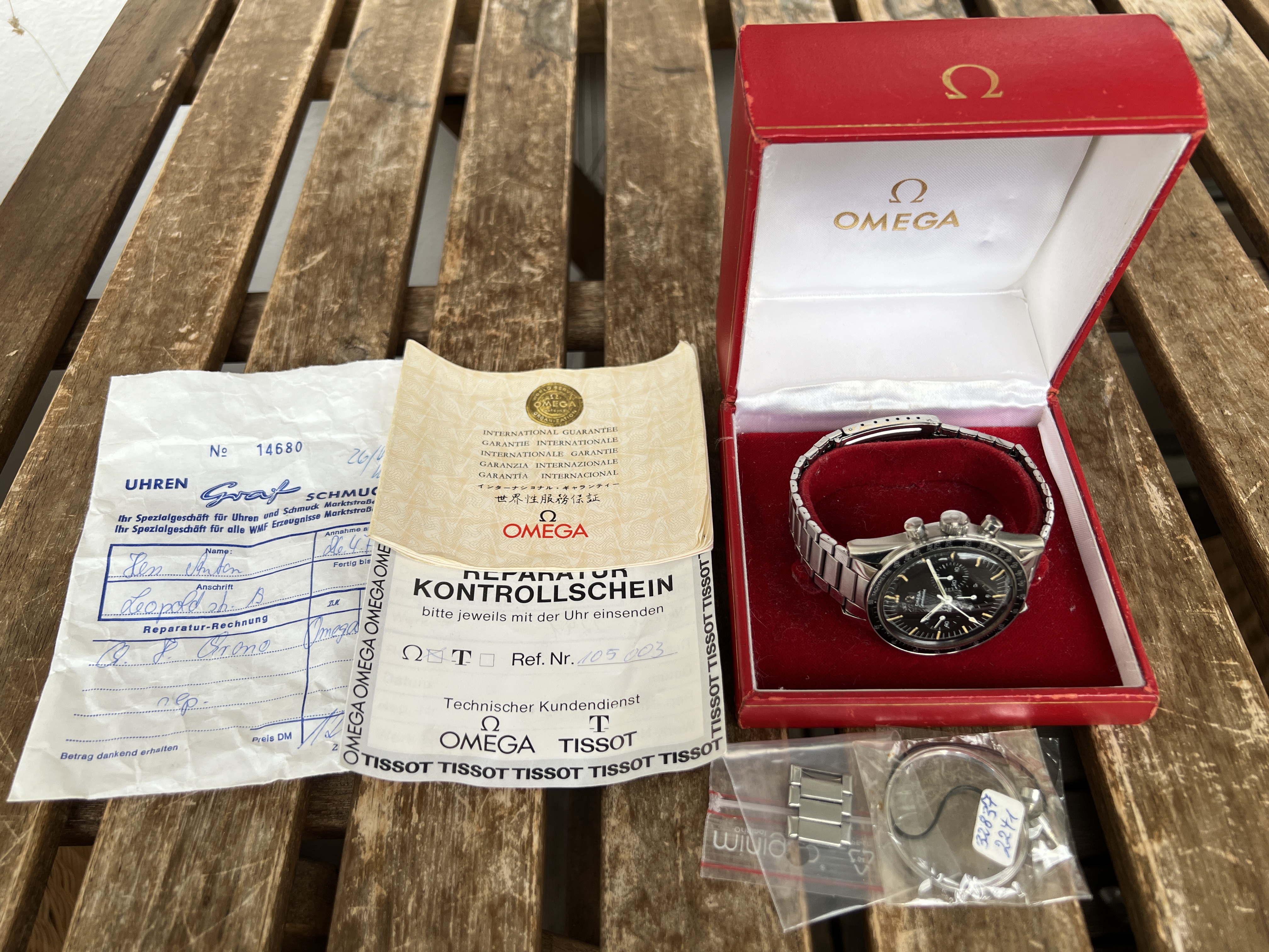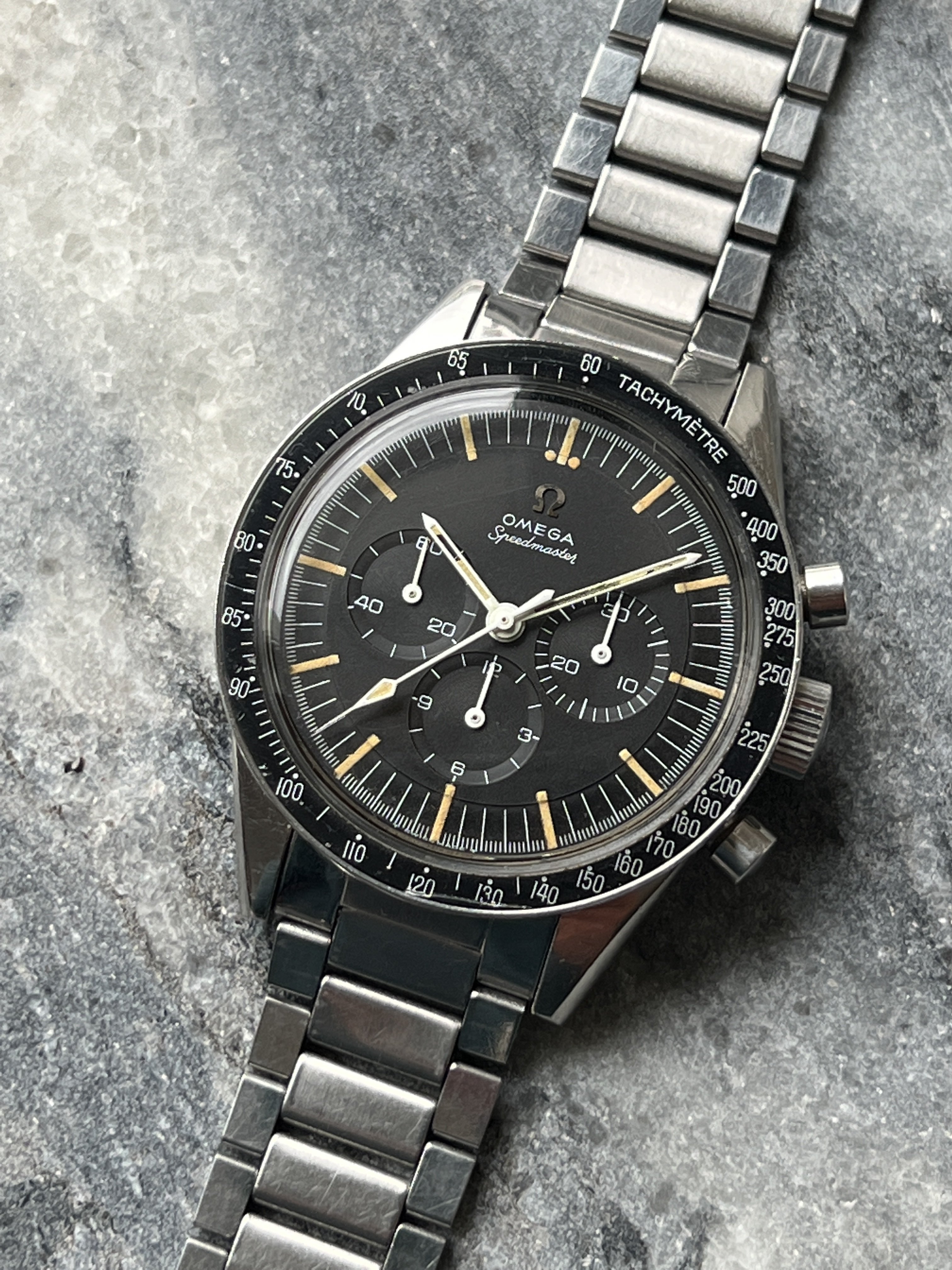 As I'm writing this, it’s raining cats and dogs outside, but the most famous virus of our time confines me to my apartment anyway. I guess the timing to drop a few lines on a recent arrival couldn’t be much better. So here goes, the reason for some recent sales of mine, a Speedmaster 105.003-63 “Asymmetrical T”, also known as an “Ed White”.