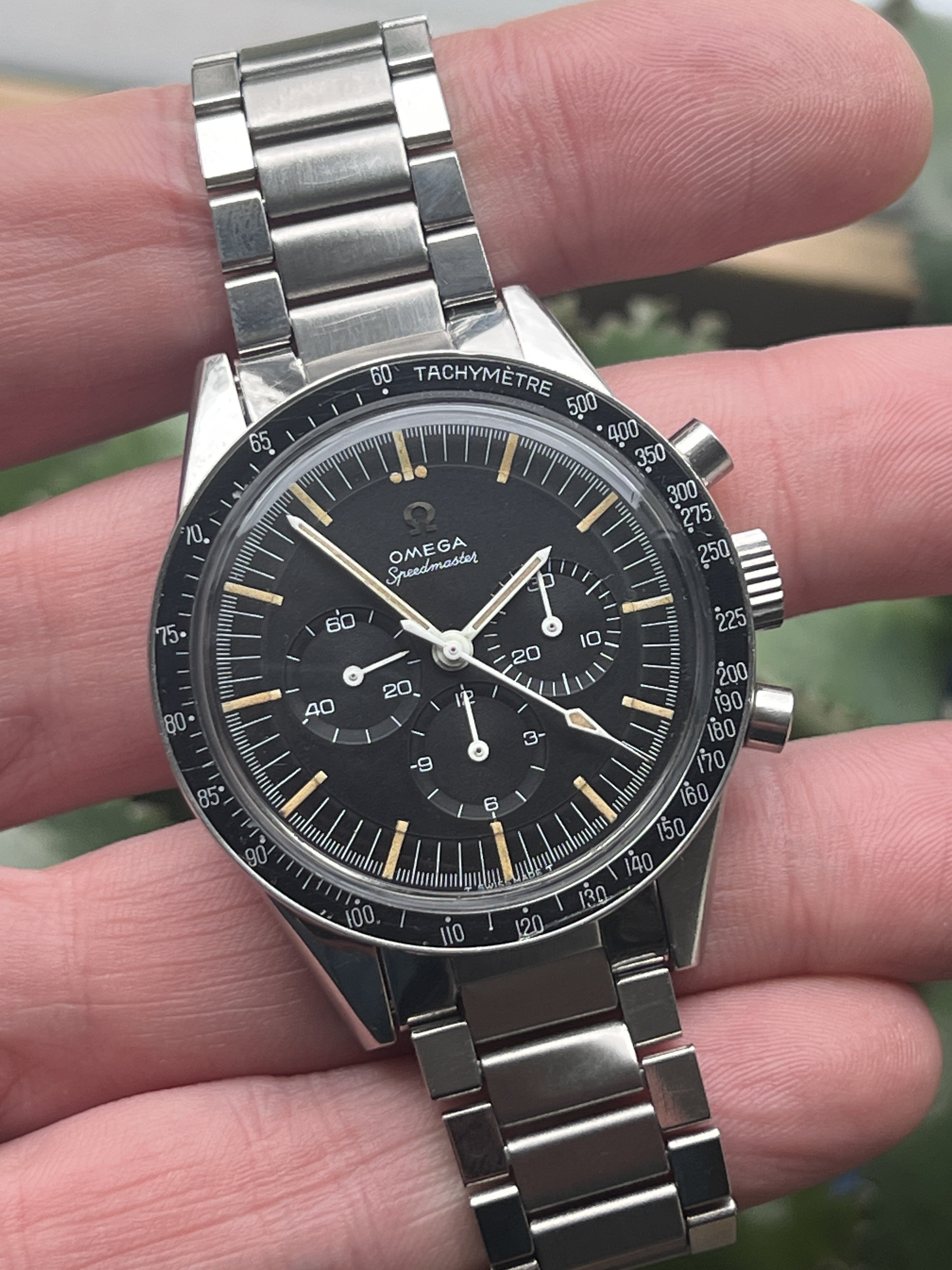 He must have had a hair free wrist: I’ve not seen a caseback with that much (presumably original) brush before. Mine is smooth.