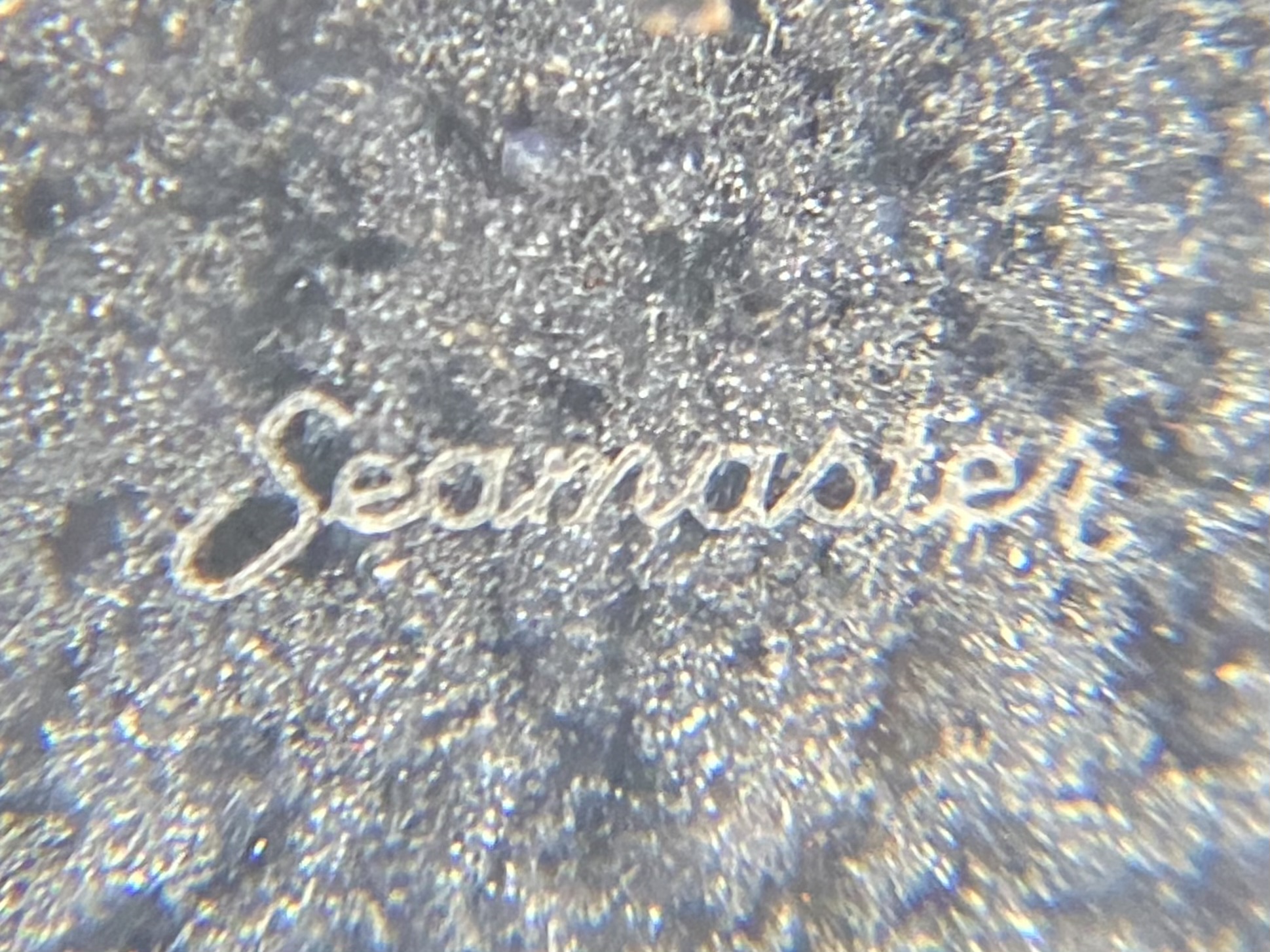 Due to the glossy plexi, the patina isn’t always visible. At a slight angle, with a lot of light and from a bit of a distance, it sometimes appears just plain black, or possibly dark grey: