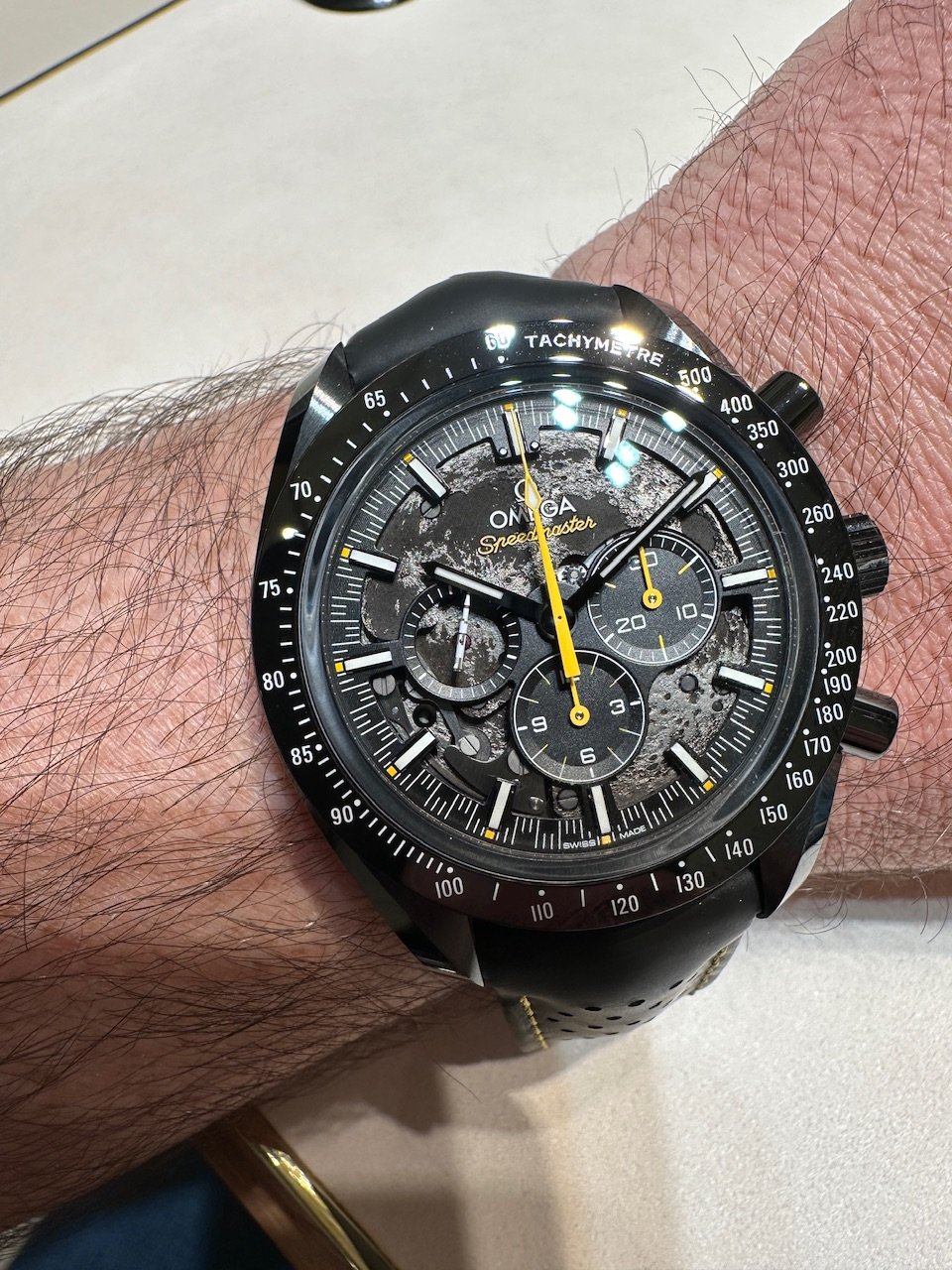 The 2013 version with the red accents and 9300 movement retailed at $12,000 USD at launch. 5 years later in 2018, the original Apollo 8 launched at $9,750. The 2013 version had a standard 9300 movement you could get in the rest of their lineup. The Apollo 8 had a unique and complex dial and almost every part of the movement on the Apollo 8's 1869 movement was finished differently from the standard moonwatch.