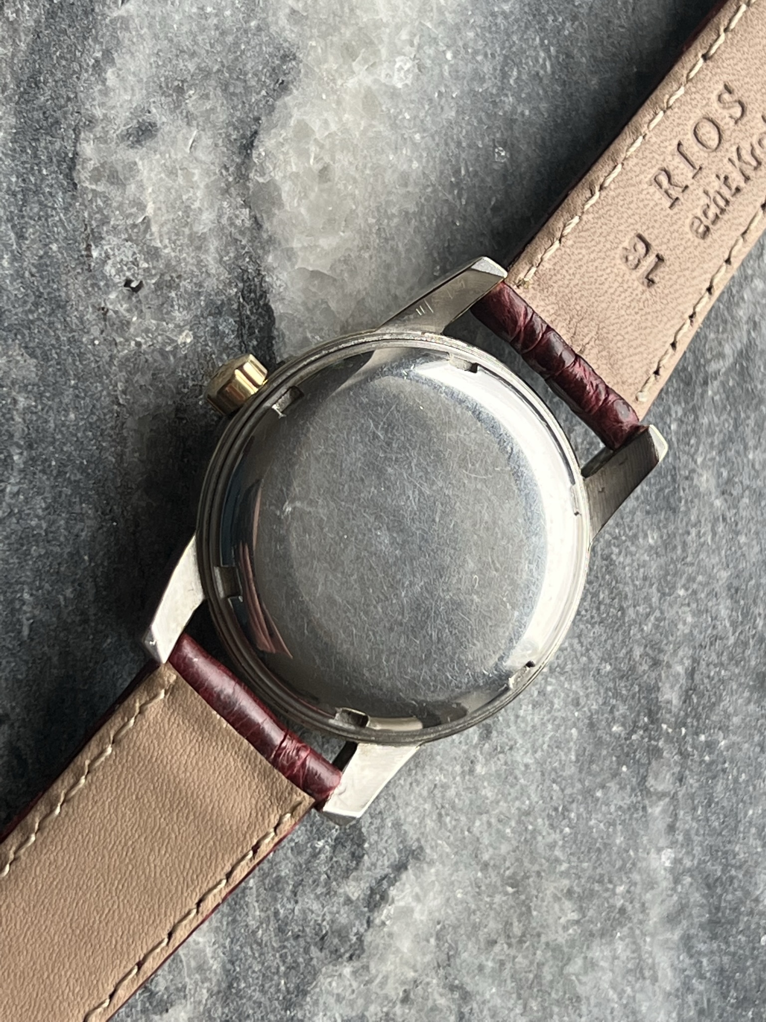 Overall, I'm a very happy bugger 😀 The party piece is definitely the dial, among the nicest hobnails I've ever had to pleasure to see in person. There's a ding on the bezel at around 6 that wasnt noticable in the auction picture, which is a shame but I it doesn't make me regret it in the slightest. The movement is also in a very clean condition and winds, sets, runs ever so smoothly - I'll soon have it serviced regardless, just to be on the safe side. Usually, I'm not one to see much value in papers on those, but it's a nice bonus. The shop where it was sold in Interlaken, Switzerland, in 1955 still exists and the next time I'm in the region I'll make sure to pop in and say hi, just for the fun of it.