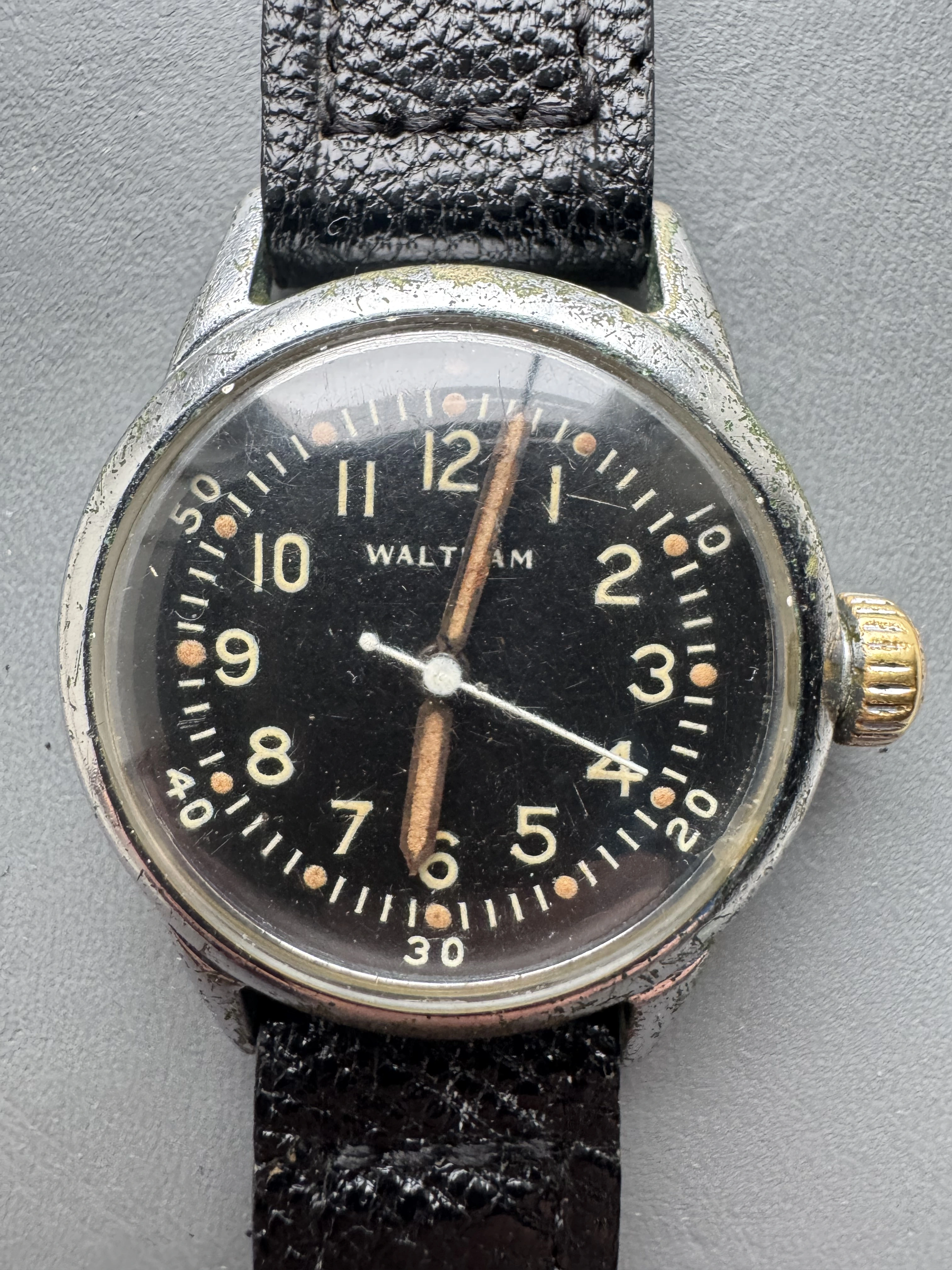 He also has an obsession with Waltham ww2 era watches and at the same fair I bought what I guess is an A11 although it has no military markings. The hands moved and it wound so I bought it while he wasn’t looking and thought I will tuck it away for his birthday which is now only a few weeks away.
