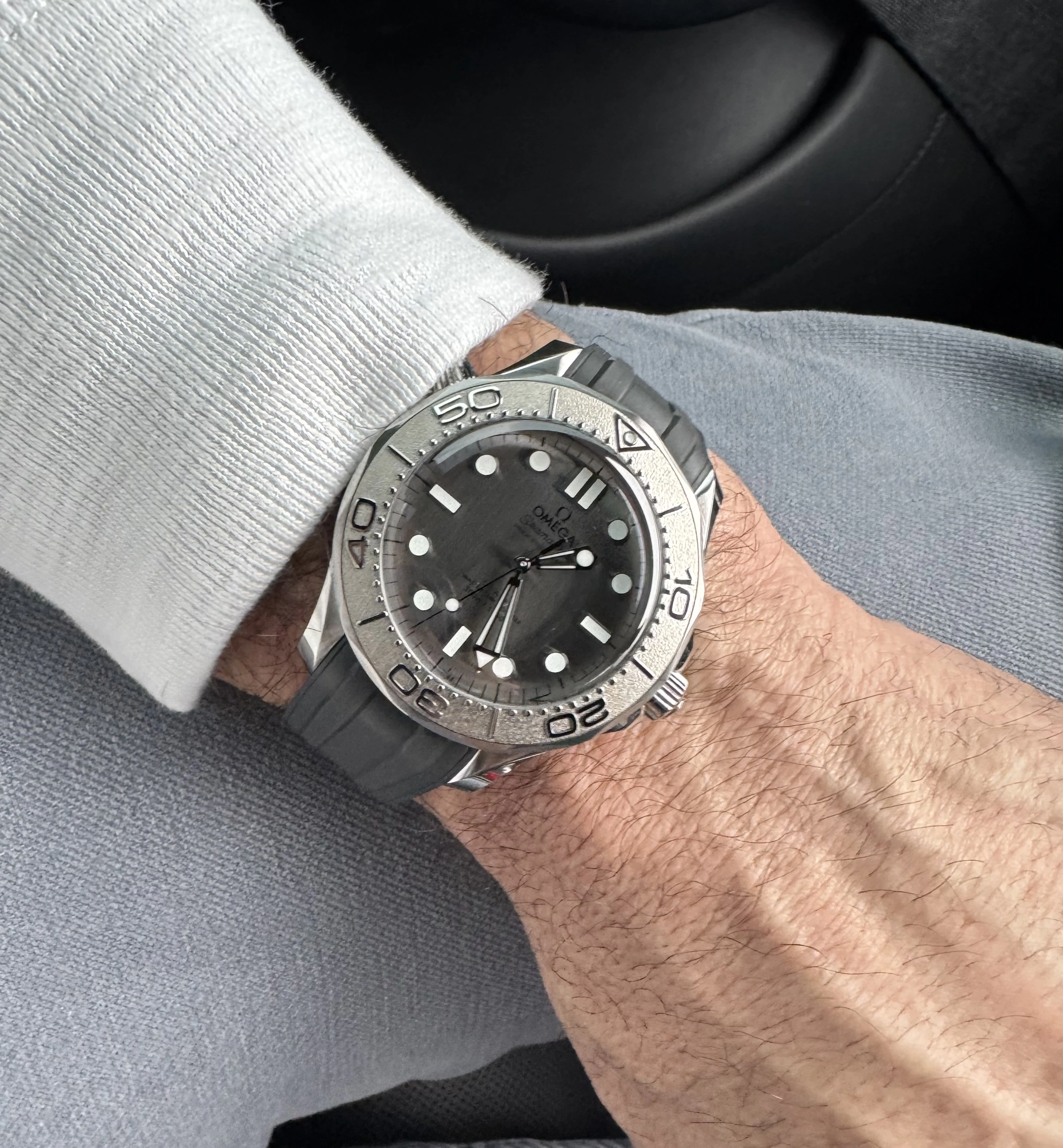 Been waiting since this was launched for inventory to get to my OB. Stopped in there today (mostly to check out the new meteor dial speedys) and while they had it on the bracelet (not a fan) they have yet to receive the model on the grey rubber strap.
