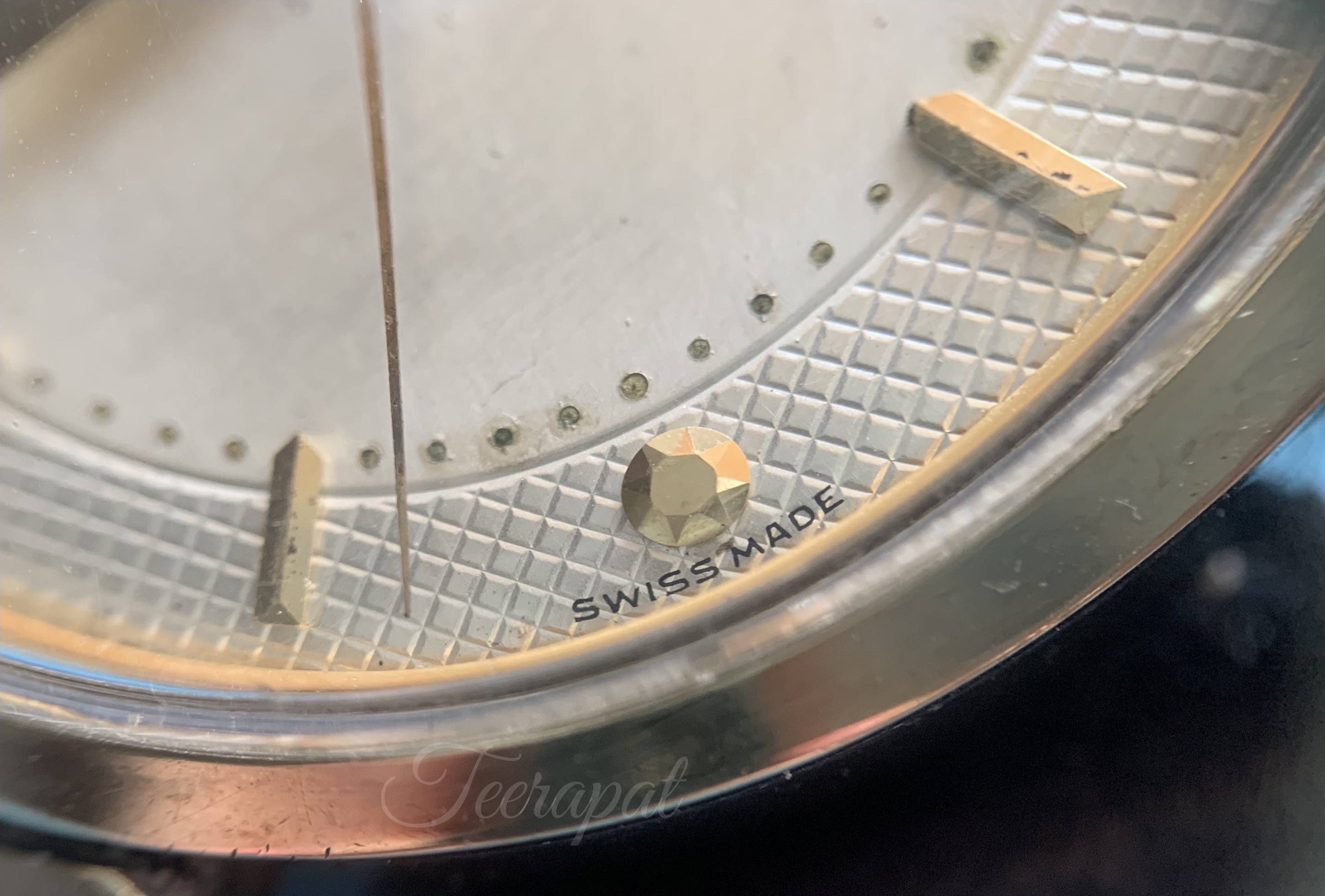 The uncommon dial pattern comes with uncommon hour-markers at 12,3,6,9 o'clock.
