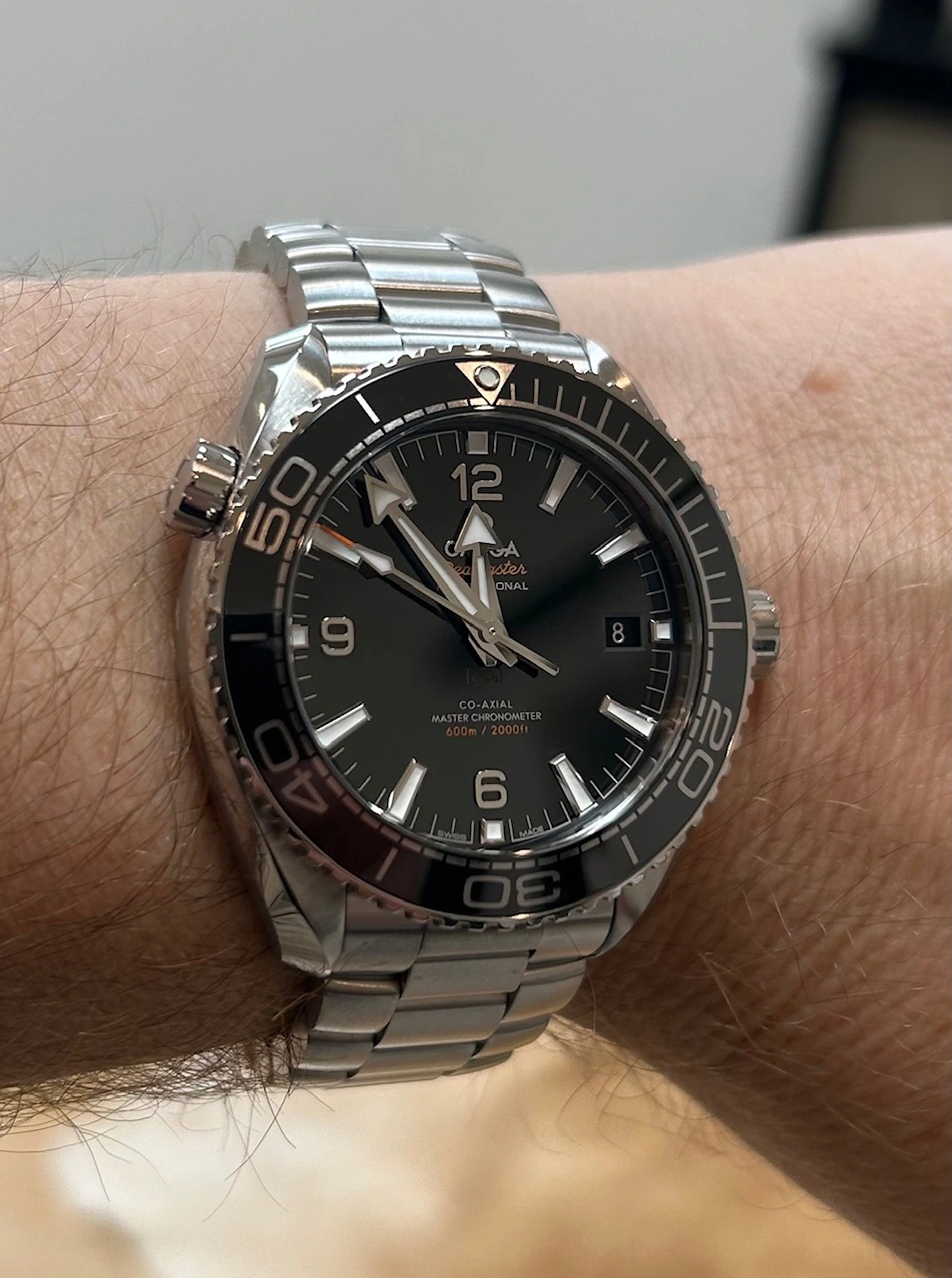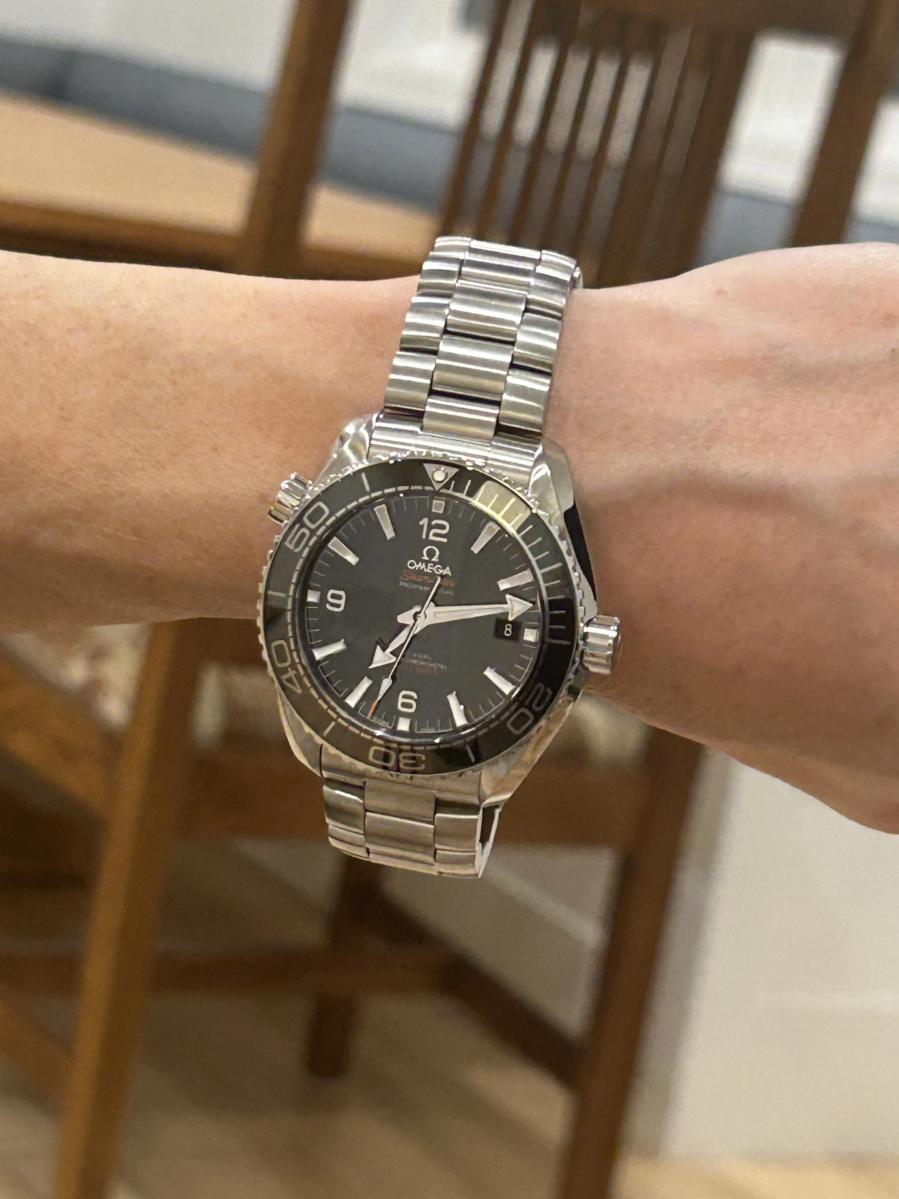 Posts 8 Likes 107 Mo Davis ·Oct 10, 2025 New watch day! What do you think, is this new planet ocean too big for my wrist? J/K here are two photos of the watch on my wrist.