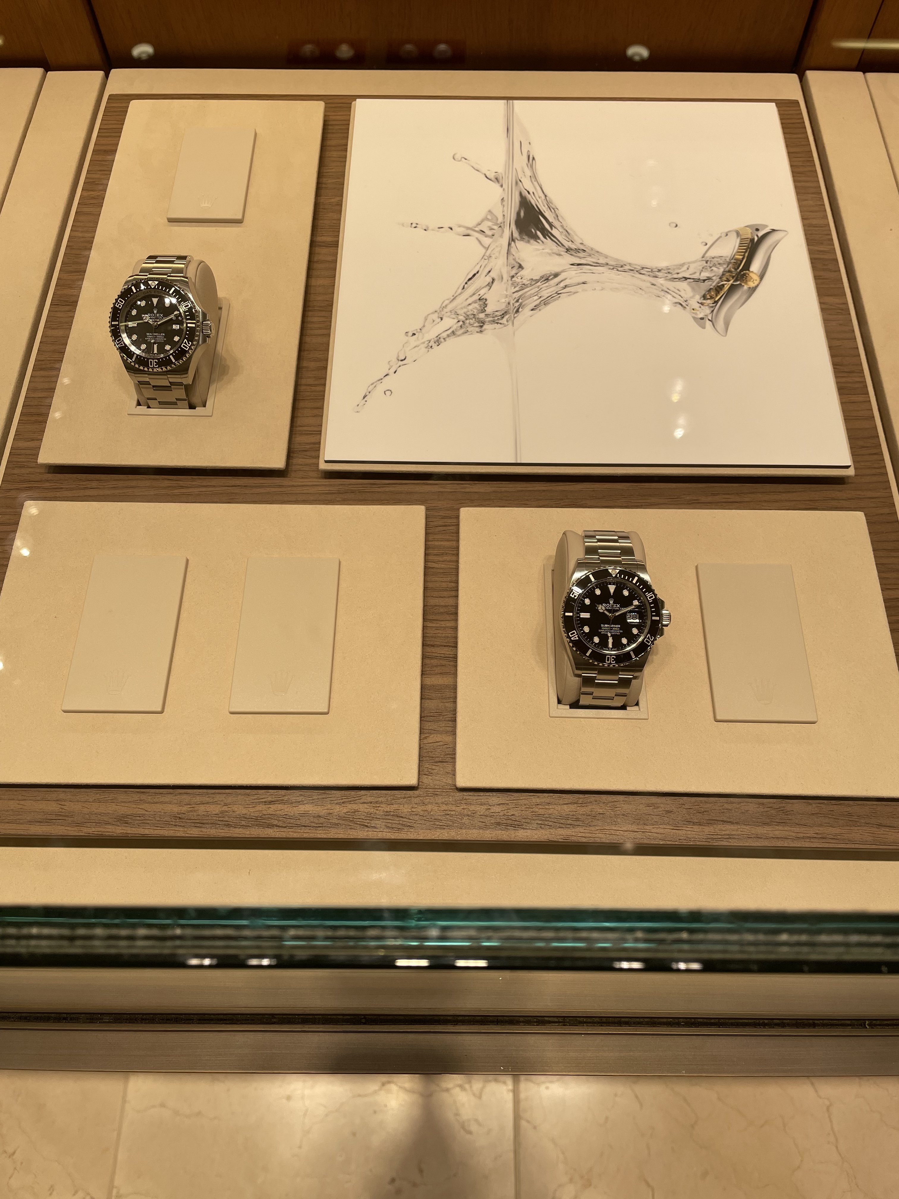 Actually the one on the upper left is a sea dweller. They also had a few yachtmasters and GMTs in the case. All for display only…not for sale