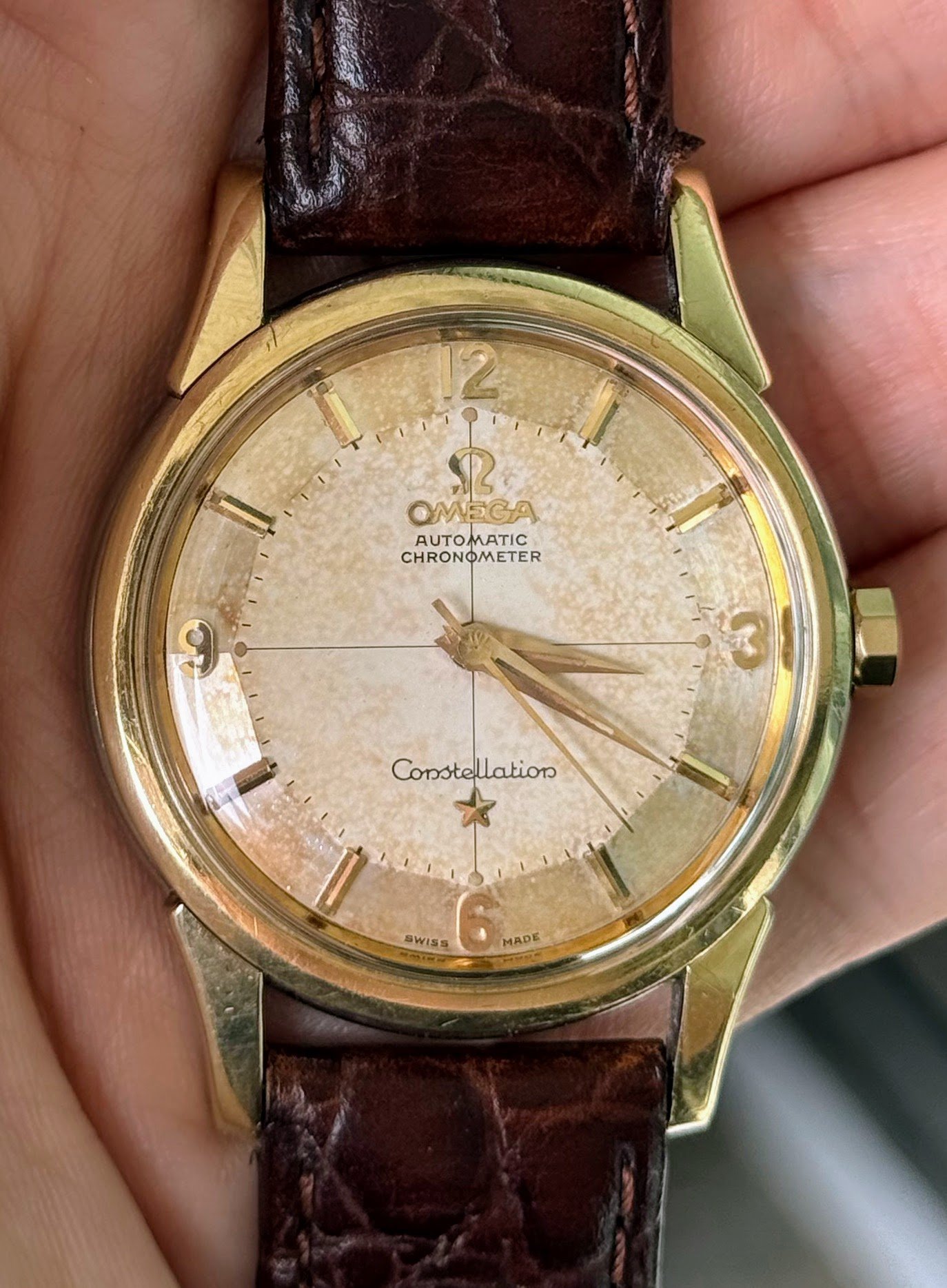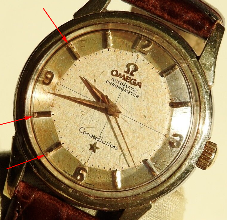 ·Hi! I was looking at the photos of a recently purchased Constellation (ref number 14381 6 SC) that I'm yet to receive. So far I identified that the crown is a replacement (check this post). I'm starting to become more familiar with identifying retouched watches which helped me avoid further purchases but I'm still far from the expertise of most people here. I realized that the lume on this watch is placed a bit inconsistently. Specifically, the lume dots on the 12/3/6/9 markers are something I couldn't find on any other model from that period (with or without the same dial pattern). Here are a few examples with a similar dial: