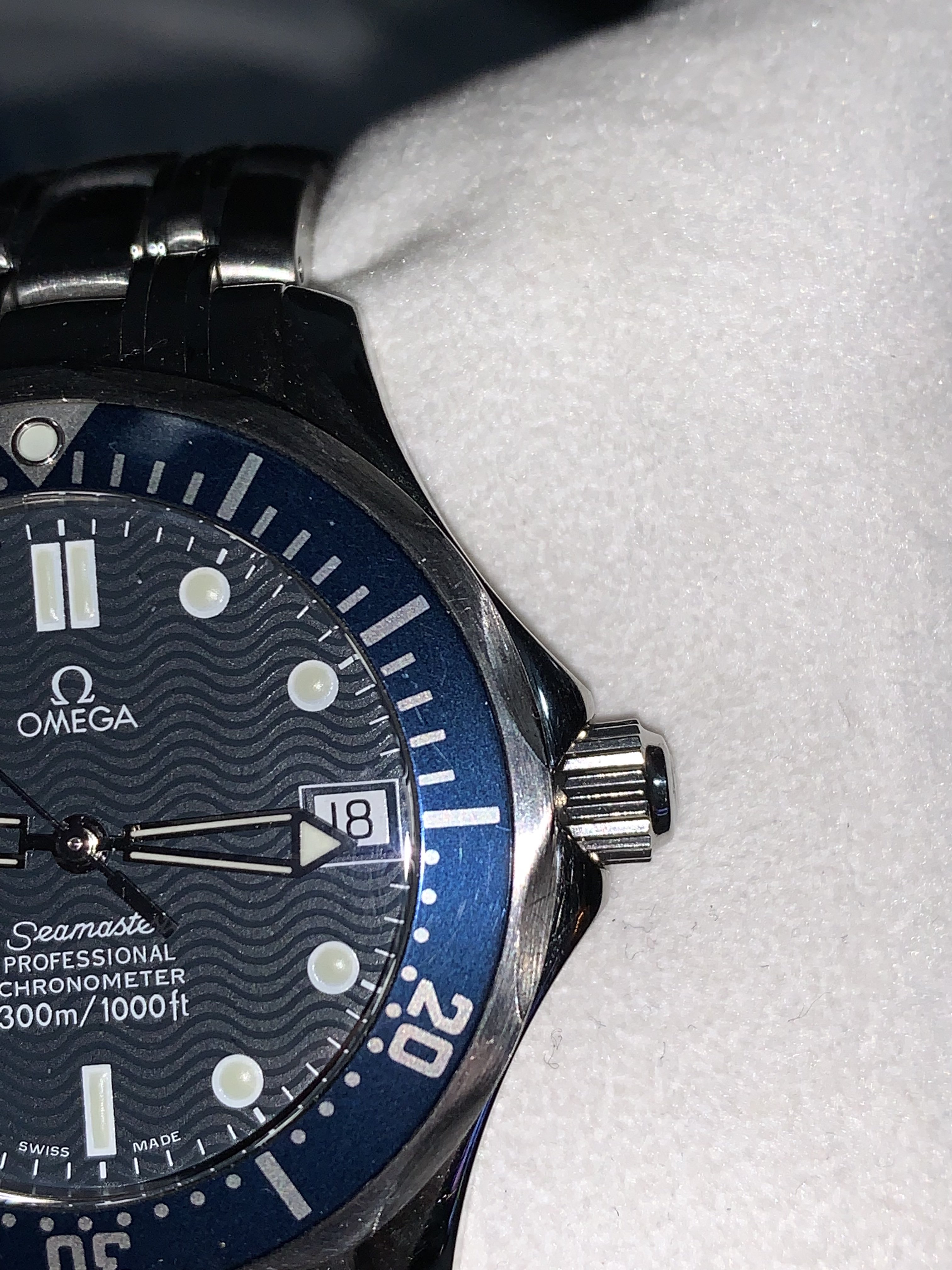It is definitely the 36mm midsize version, but it doesn’t appear the crown is screwed in all the way. As others have suggested, pull the crown out, then turn CCW before screwing in. If you can’t get it to work, take to a watchmaker for evaluation. Probably needs a service if you just purchased it. Never trust sellers descriptions if they say “works great.”[/QUOTE