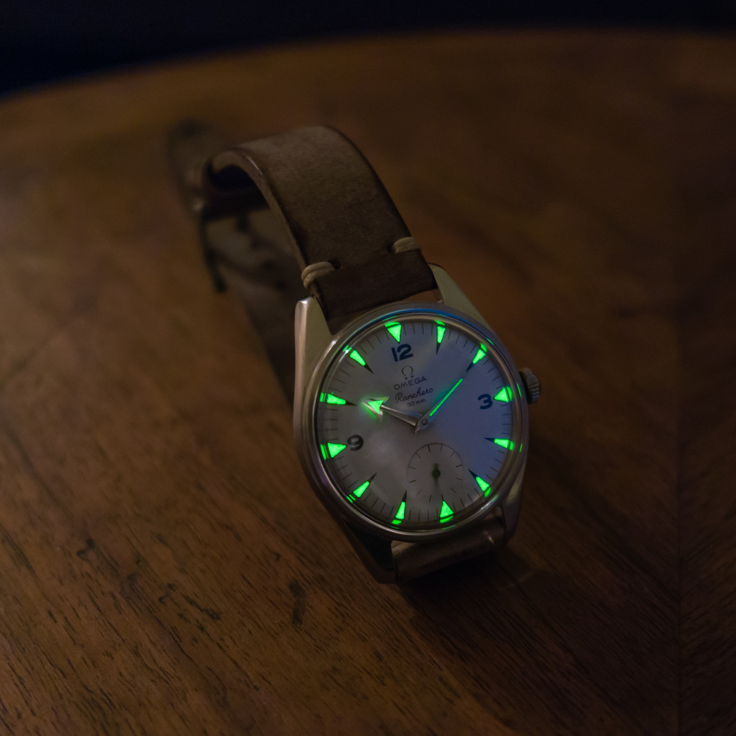 Radium here. This is not how it looks in real life, this is a long exposure taken in a very dim environment after charging it with a strong light source. In real life it glows faintly but visibly for a few seconds.